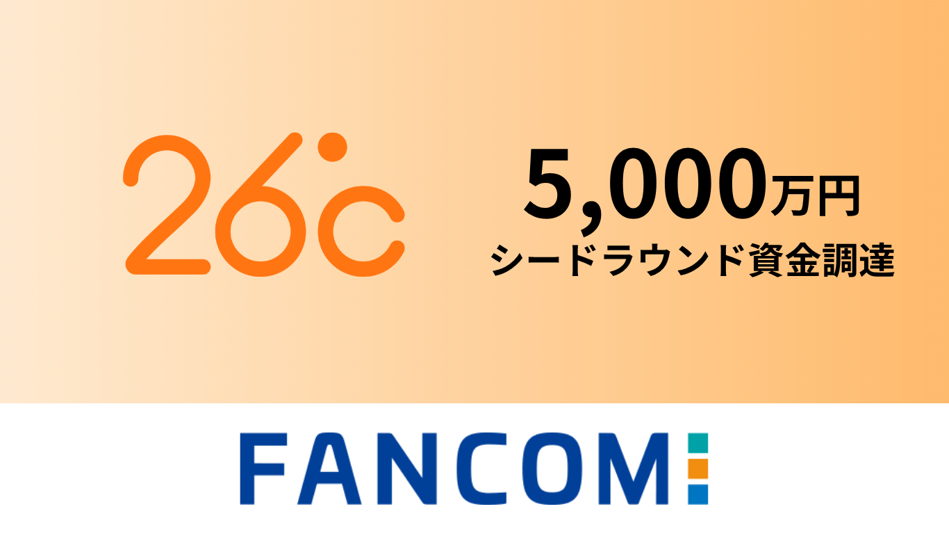 株式会社ニジュウロクド(本社:東京都渋谷区、代表取締役:宮澤一博、以下「26°C」)は、株式会社ファンコミュニケーションズ(本社:東京都渋谷区、代表取締役社長:二宮幸司 東京証券取引所プライム市場:2461)を引受先とした5,000万円の資金調達(シードラウンド)を実施いたしました。