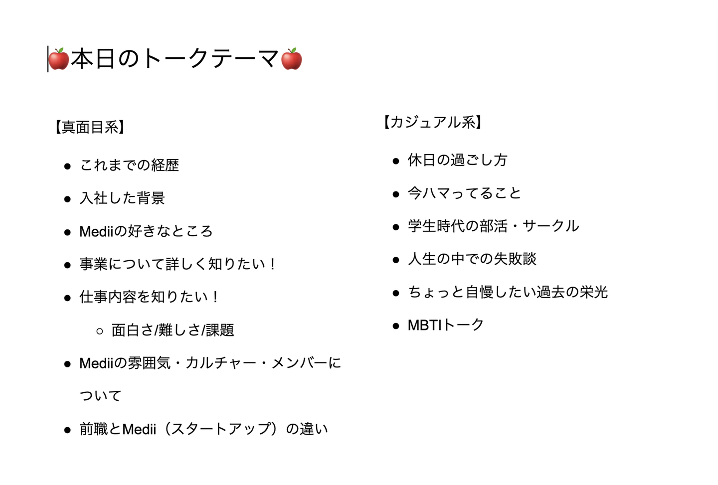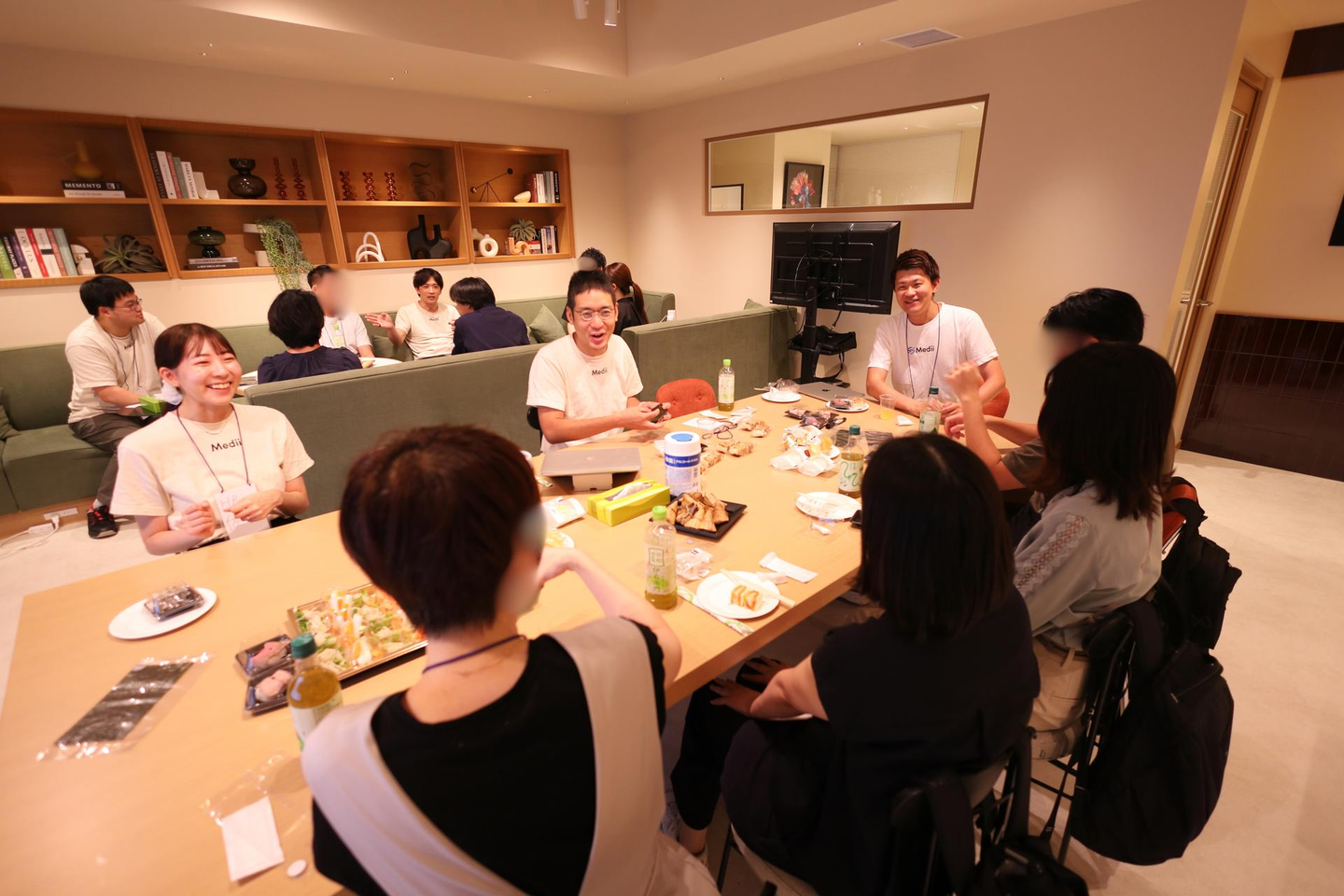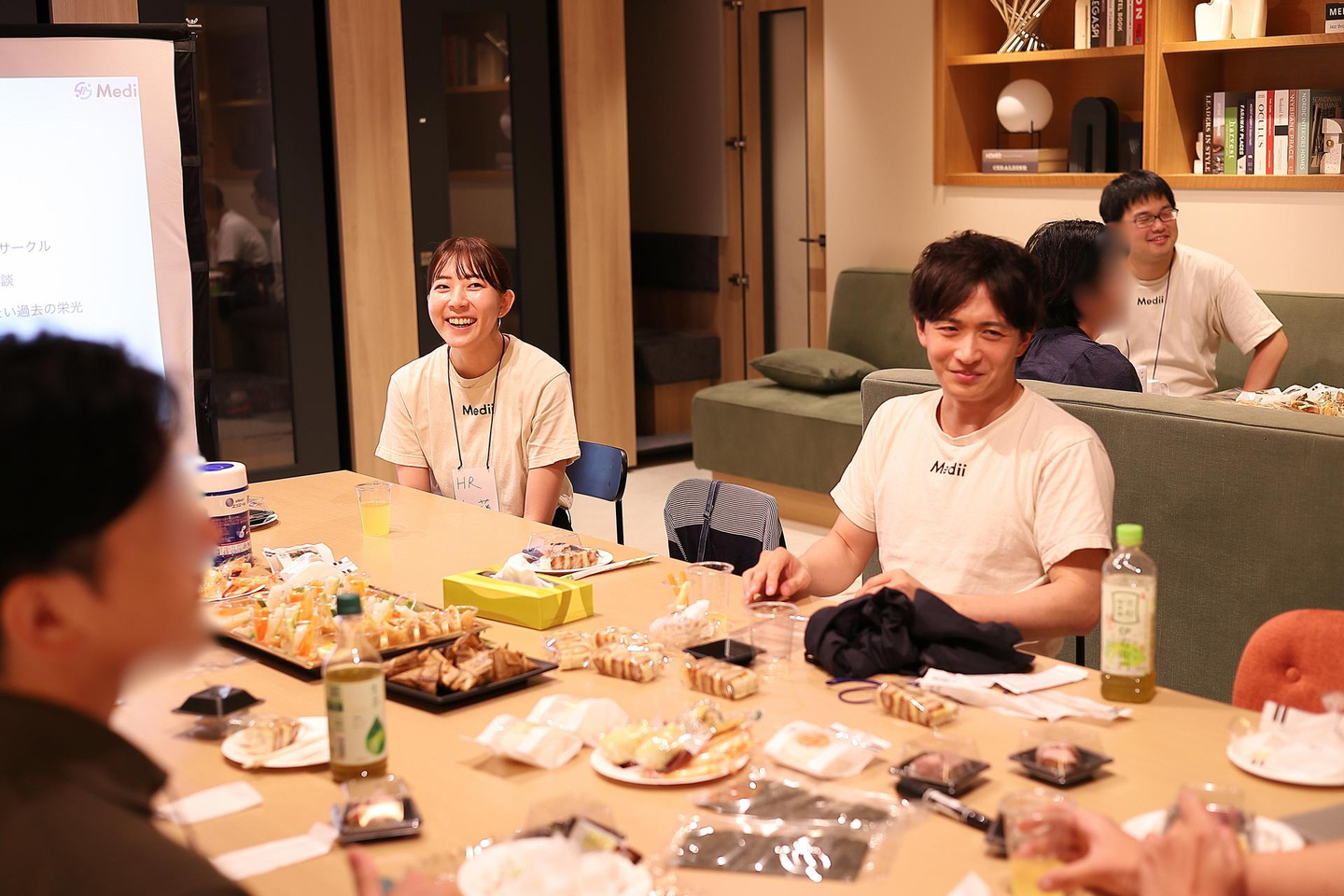 Mediiでは、2025年7月22日のオフィス移転を機に、Mediiメンバーの知人・友人に限定した招待制のオフラインイベント「Medii Talk Lounge vol.1 〜ごはん片手に、Mediiをのぞいてみませんか?〜」を開催しました。
