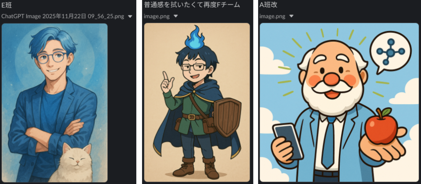 AIの仕組みについてレクチャーを受けた後、まずはウォーミングアップとして、自己紹介イラストと、Mediiのキャラクターを作成。グループに分かれ、指定されたプロンプトに情報を加えた結果・・・