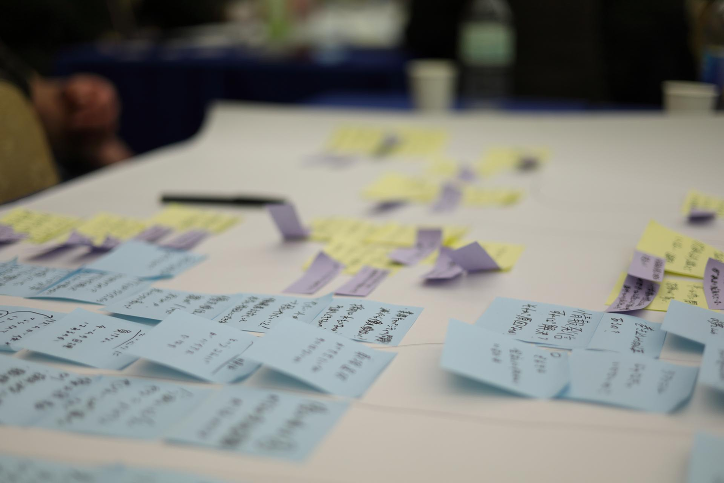 メンバーの半分はテーブルに残り、それ以外のメンバーは他のチームのテーブルへ移動します。こうすることで、各チームの課題に対して、多角的な視点から課題解決のヒントを集めることができました。