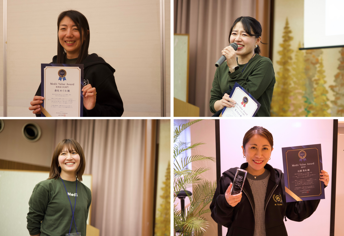 そしていよいよ、3つのバリュー「カスタマーハピネス」「成果最大化」「Team Medii」それぞれの部門別受賞者、そして総合MVPの発表です。