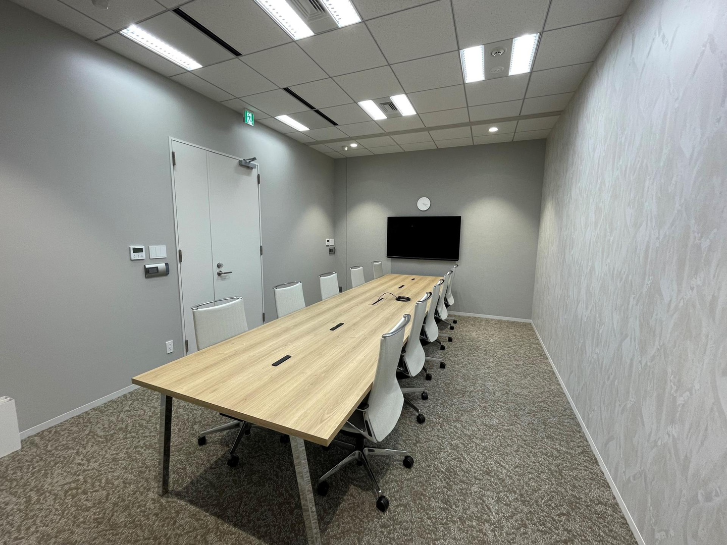 高級感のある仕上がりになっている10人用会議室と、
