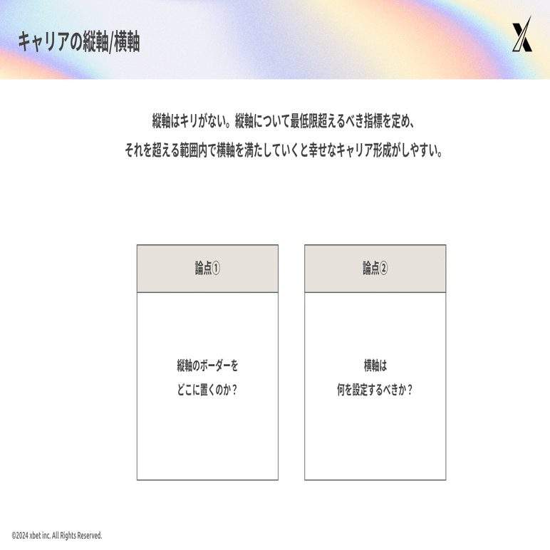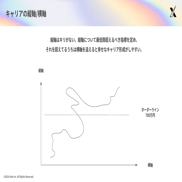幸せなキャリアを築くためには、この「縦軸」と「横軸」のバランスを考えることが非常に重要になります。