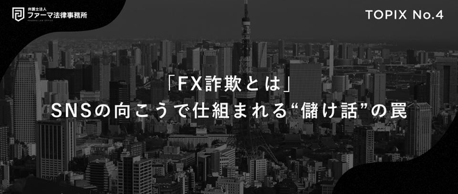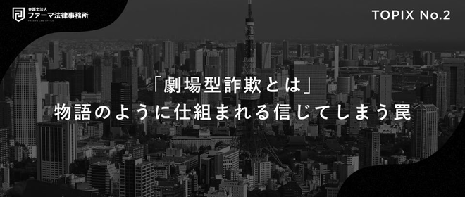 昨今、毎日のように詐欺被害のニュースを耳にします。 騙されたくて騙される人などいません。 いま、不安な思いを抱えている方にとっての、 「いざという時の、頼れる存在」として被害に遭われた方に寄り添い続けています。 ファーマ法律事務所は、詐欺被害の専門家として培った 確かな実績と信頼、知見とノウハウはもちろんのこと、 チャレンジングな挑戦をする“ベンチャーマインド”も持ち合わせています。 一人でも多くの人の力になれるように これからも進化をし続ける、詐欺被害のプロ集団です。