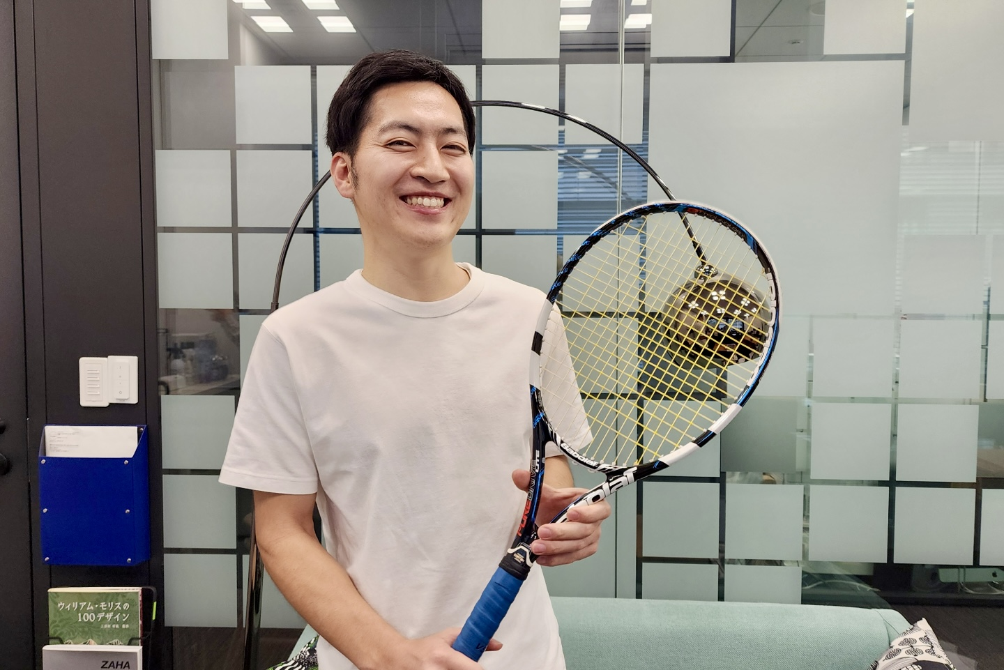 あと、テニスができる方は大歓迎です!社内にはテニスクラブがあり、テニス好きなメンバーが集まりレッスンを受けたりと、定期的にみんなで楽しくテニスをしています。また、野村さんもテニスが好きなので、空いている時間を見つけてテニスに誘えば、快く承諾してくれ、2人でテニスをすることができたりもします。