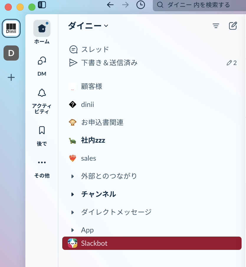 前職で営業をしていた際は会社の方針や各事業部の進捗について知る機会が3ヶ月に1度しかなかったが、ダイニーは毎週月曜日に会社の方向性を全社に向けて報告する環境があり、常に情報をオープンにしてくれる。そのため自分が何のために営業をしているのかを自覚することができ、自信をもって提案ができる。「営業がしやすくなり、お客さまに向きあう時間がどんどん増えています!」と楽しそうに話してくれた。業務で使用しているSlackも、お客さまを1番上に設定しすぐに返信をできるようにしているのだそう。