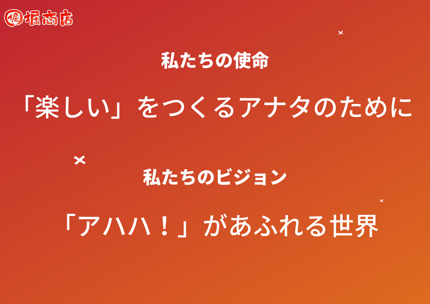 「楽しいをつくるアナタのために」というMissionと「アハハ!があふれる世界」というVisionを掲げている堀商店としては、子ども達の楽しいをつくるハードルを下げ、より多くのお客様が子ども達を喜ばせることにより、アハハ!があふれる世界を実現できると考えているため、全ての人にお取引頂ける体制を整えているつもりです。