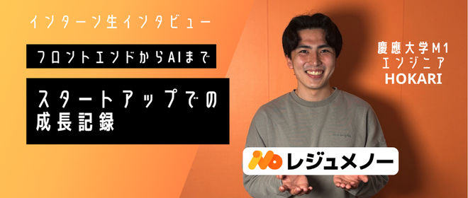 プロフィール名前:hara大学:慶應義塾大学大学院1年研究:コンピュータビジョン、機械学習💻エンジニア養成期間「42Tokyo」卒業2024/8からレジュメノーのエンジニアインターンきっかけは親友からの誘いレジュメノーのインターンへの参加経緯を教えてください!大学の同級生で、42Tokyoで一緒に勉強していた友人のhokariくんが先にレジュメノーにジョインしていて、その友人からのリファラルで参加することになりました。当時は社長も含め全員エンジニアでエンジニアに対する理解が深く待遇がとても良かったのと、学生で平日は授業や研究室の活動があるため、土日でも働ける環境がとても良いと思いました。...