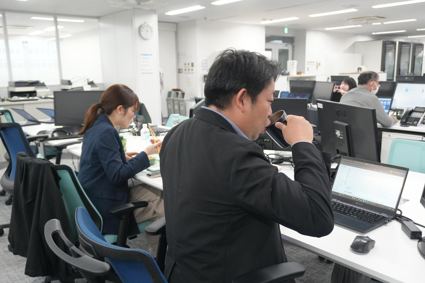 夕方は営業も外から帰ってくるので、社員同士でコミュニケーションをとる場面も✨