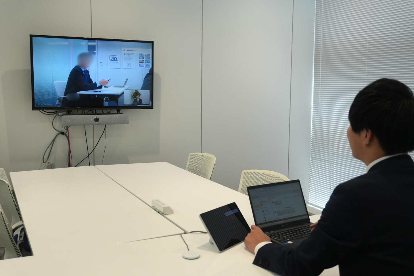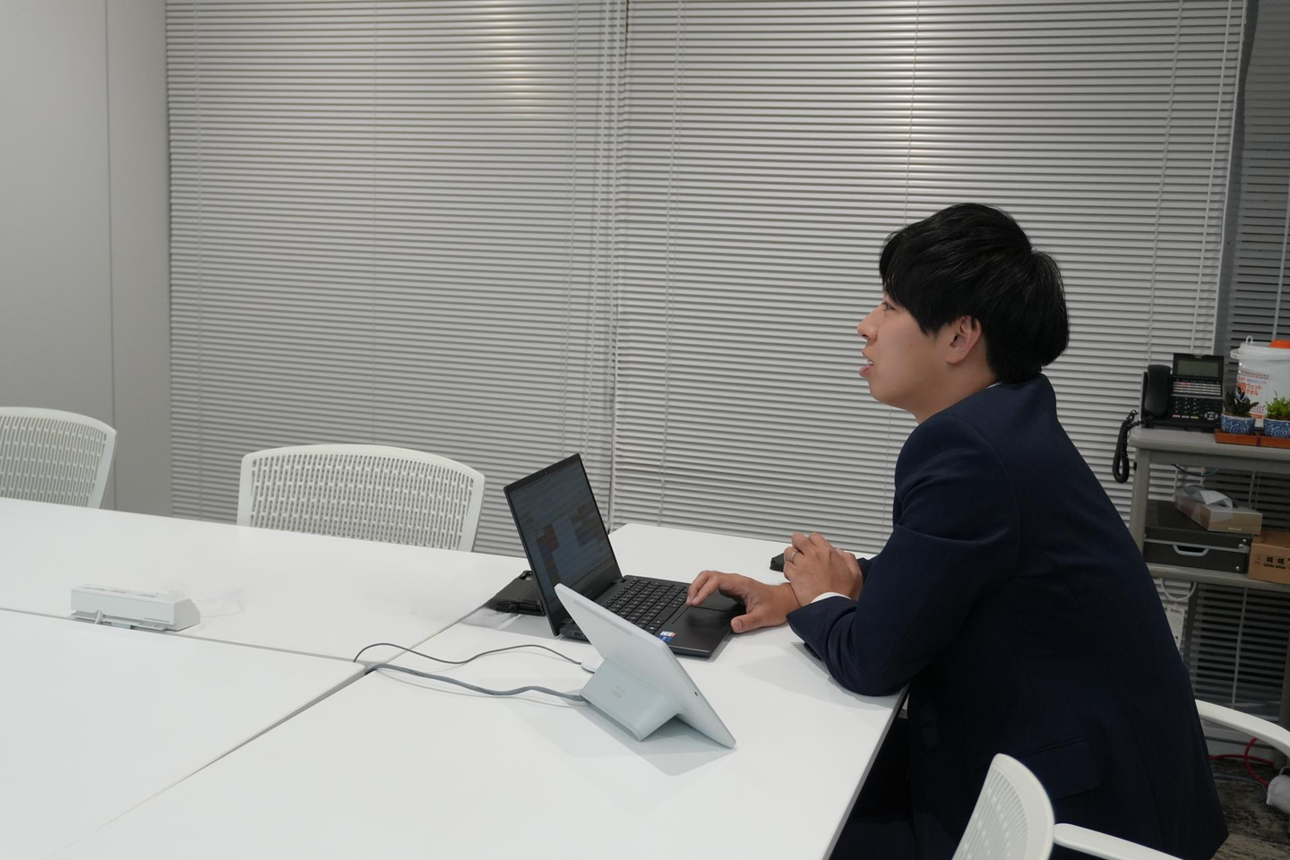 まずは中途採用の方との面接。関西支店勤務希望の方だったので、会議室からWEBで参加!応募理由やこれまでのキャリアを丁寧に聞きながら、転職活動で叶えたいことが当社でご提供できるかどうかを慎重に判断していきます。