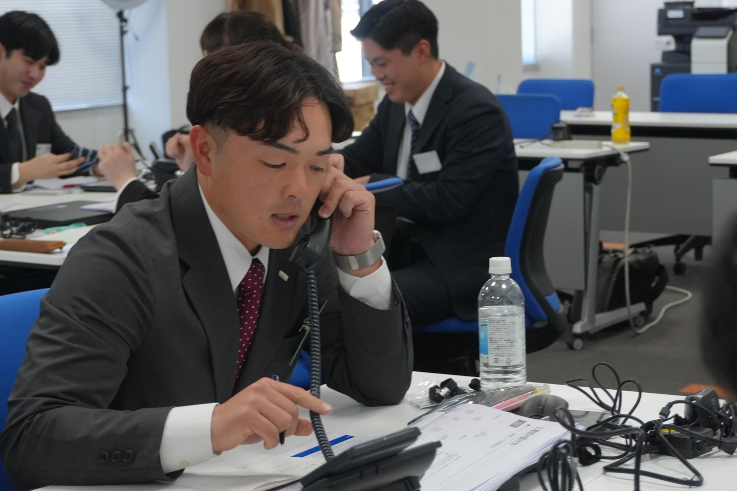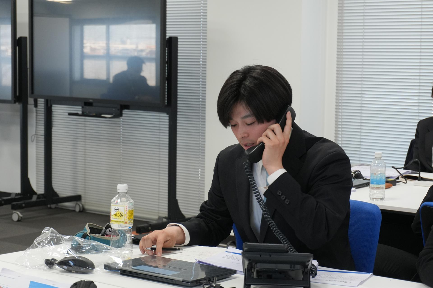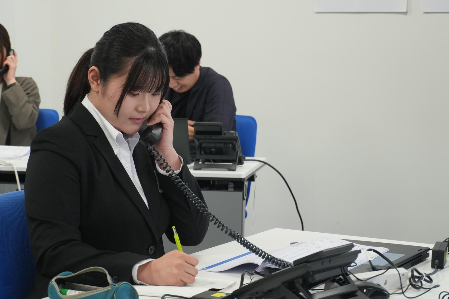 続いては電話応対の練習。昨日学んだ敬語をベースに、どのような対応が正しいのかを一緒に練習です。取次の仕方、電話の受け方、電話のかけ方などをケースワークを通じて学びました。