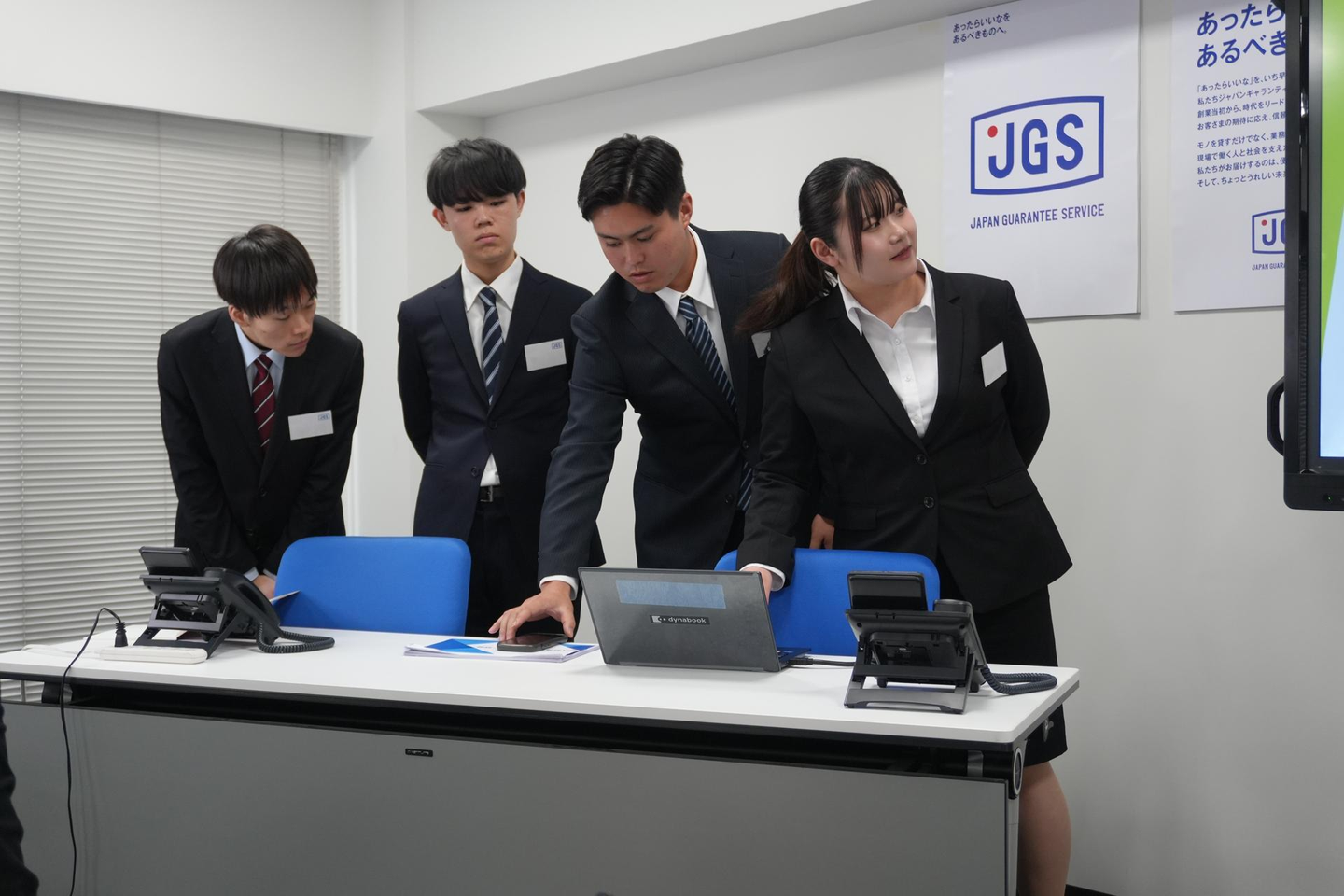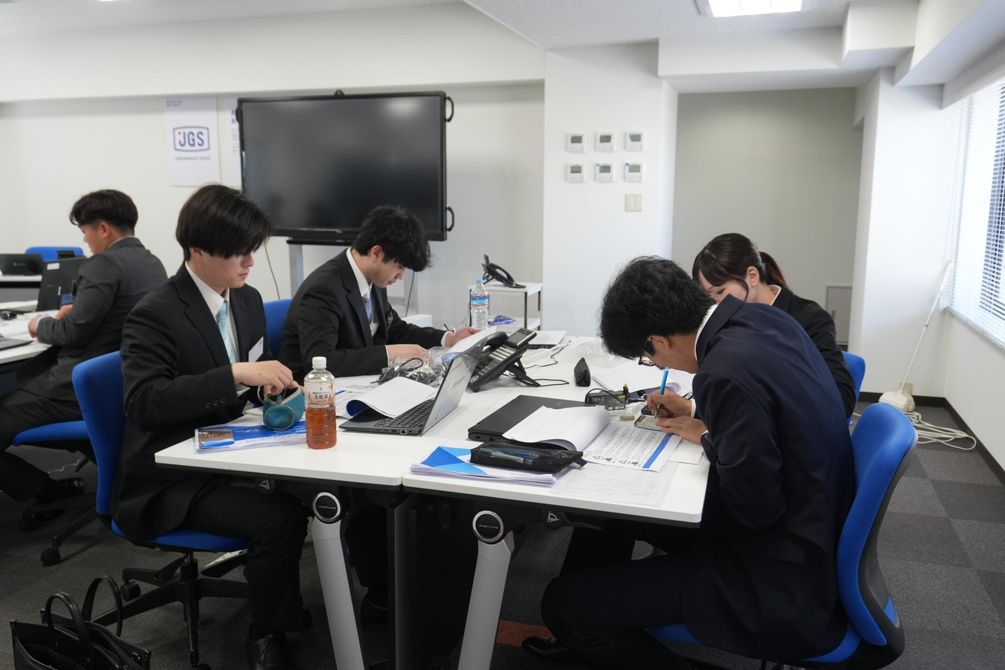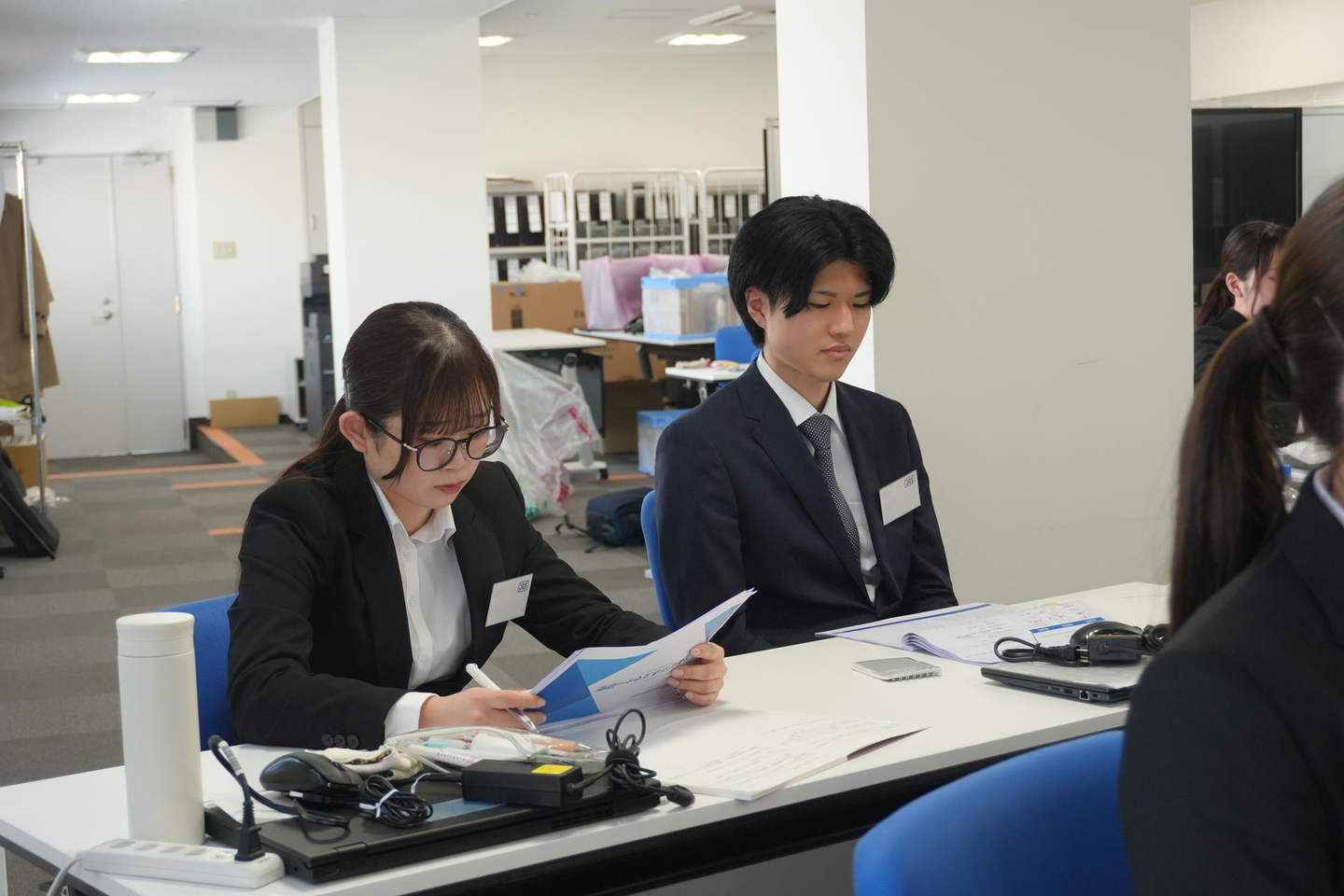 続いては電話応対の練習。昨日学んだ敬語をベースに、どのような対応が正しいのかを一緒に練習です。取次の仕方、電話の受け方、電話のかけ方などをケースワークを通じて学びました。