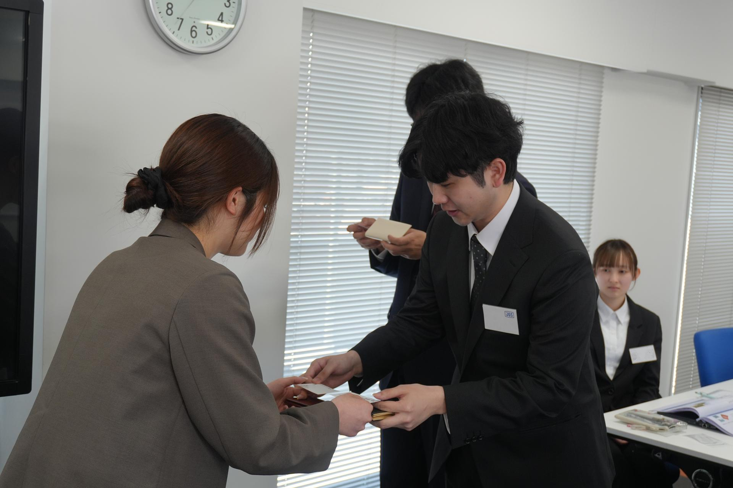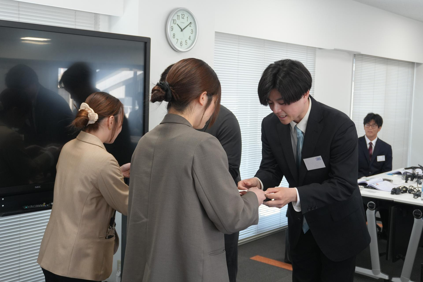 この日は実践が多い1日でした!まずは名刺交換の練習から。