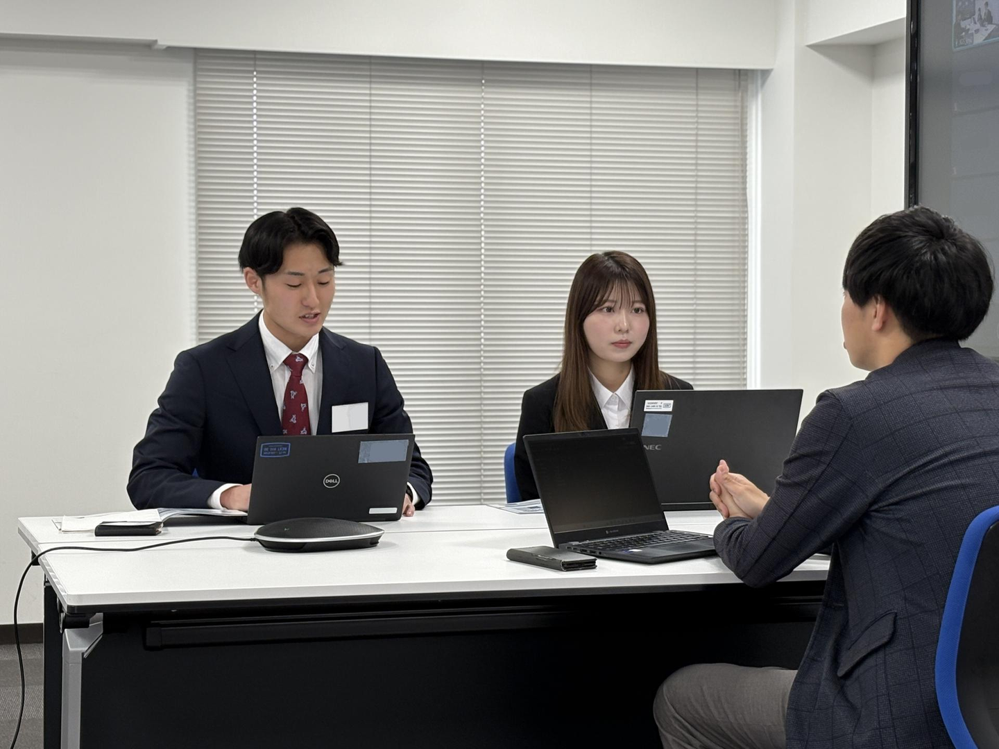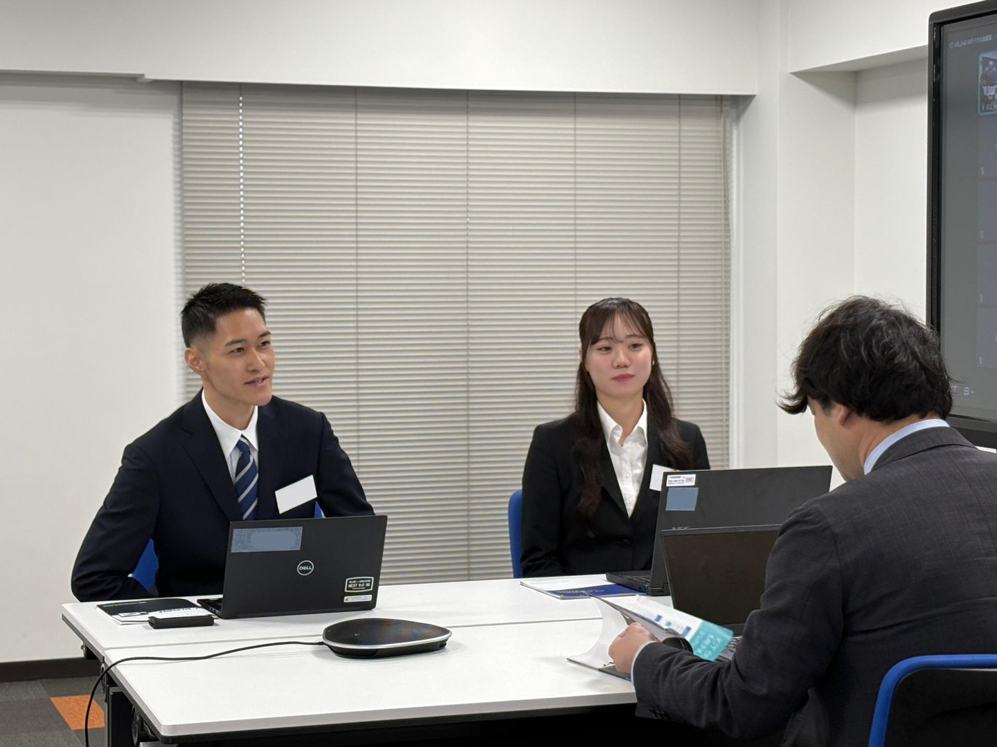 最後の社内研修は営業部研修です!1ヵ月で身に着けた社会人としての基礎知識、そして当社についての知識をフル活用し、営業ロールプレイングを行っていただきました。