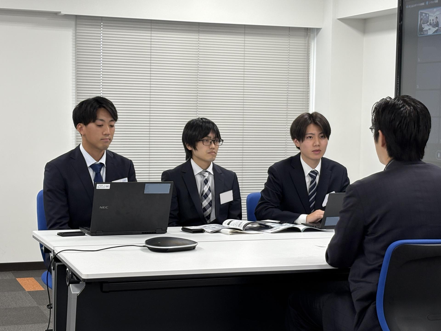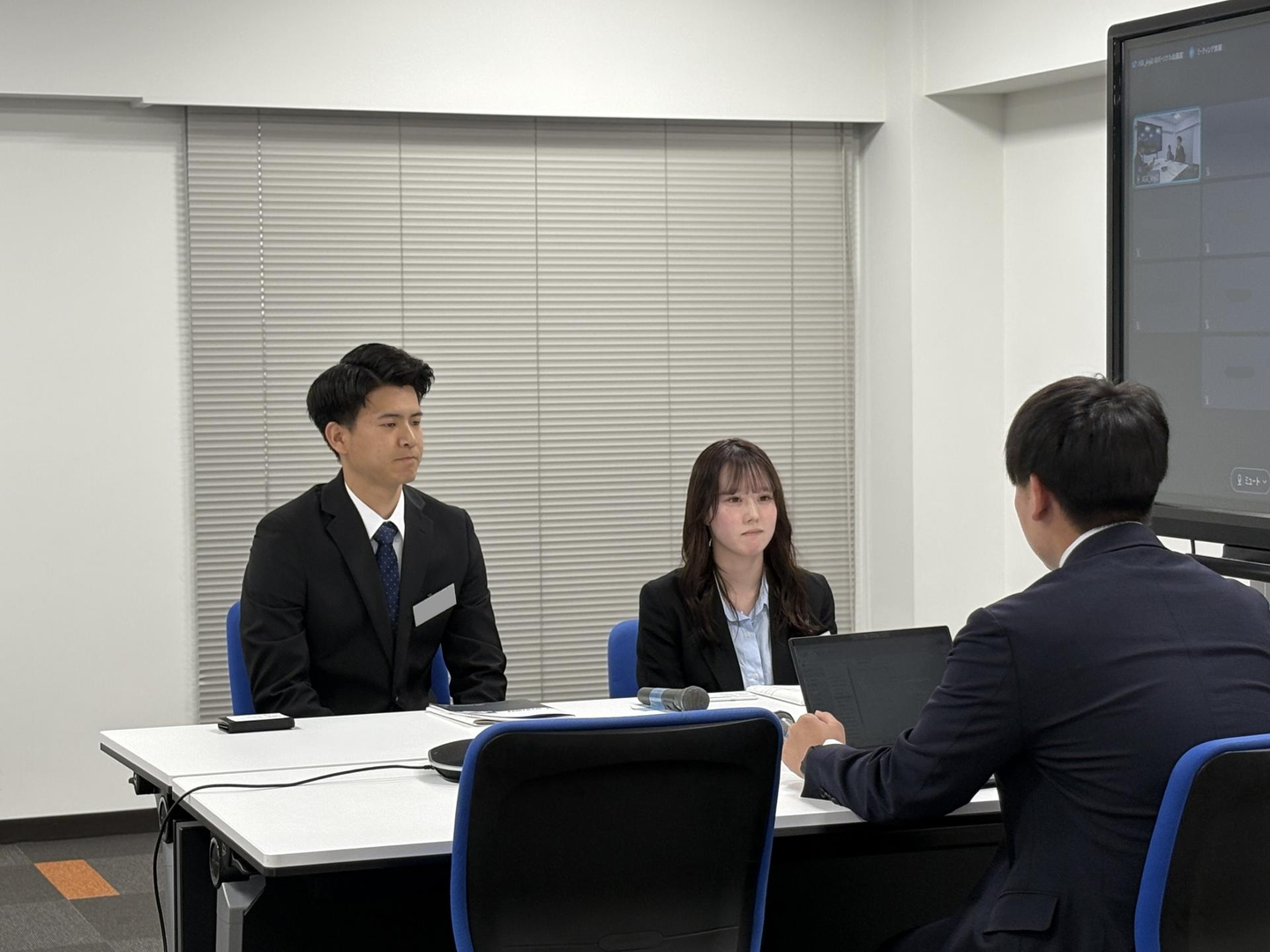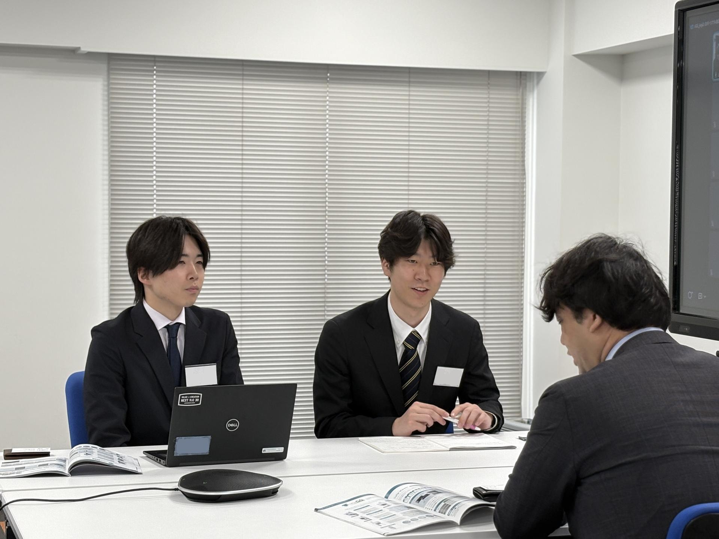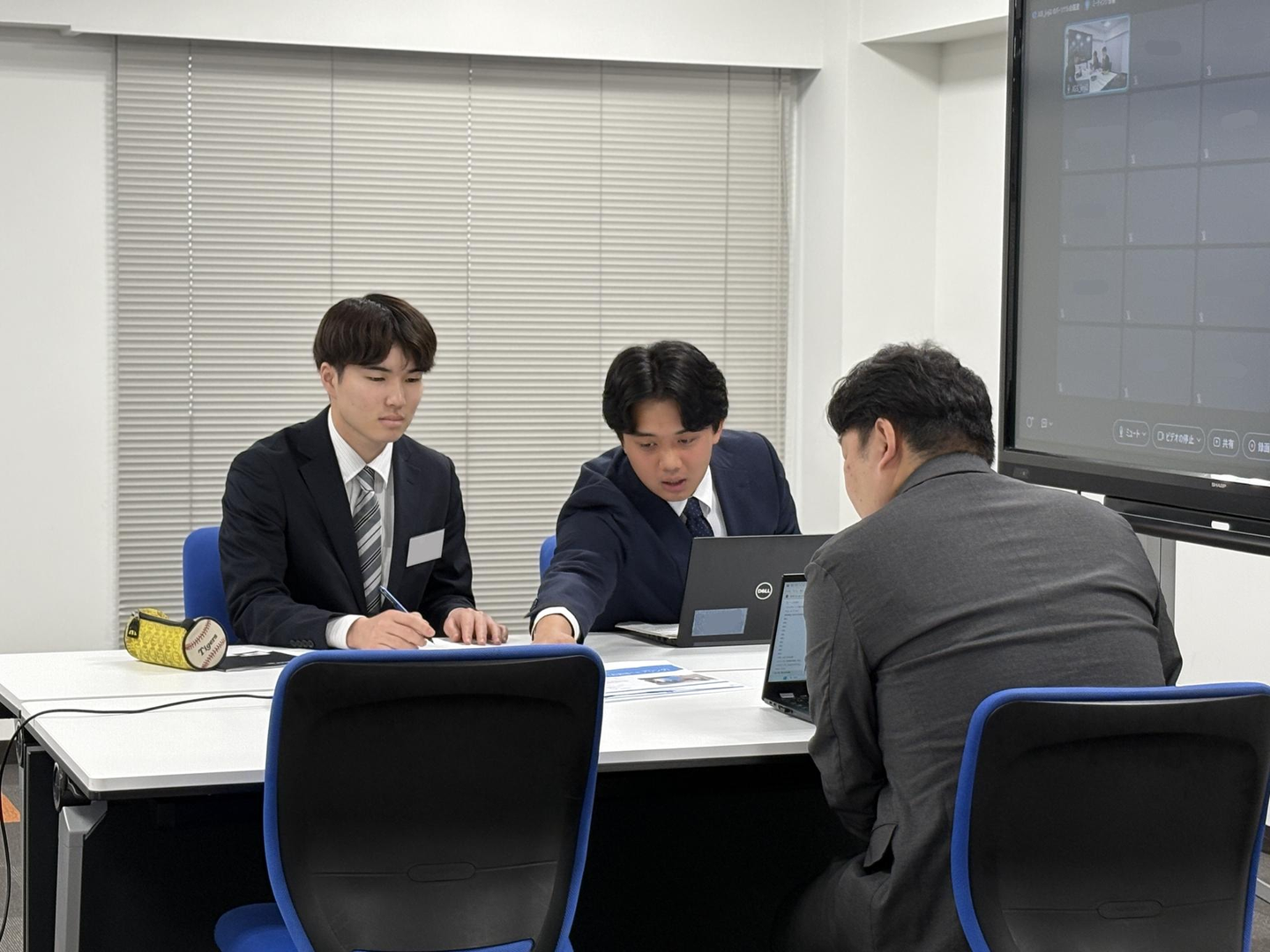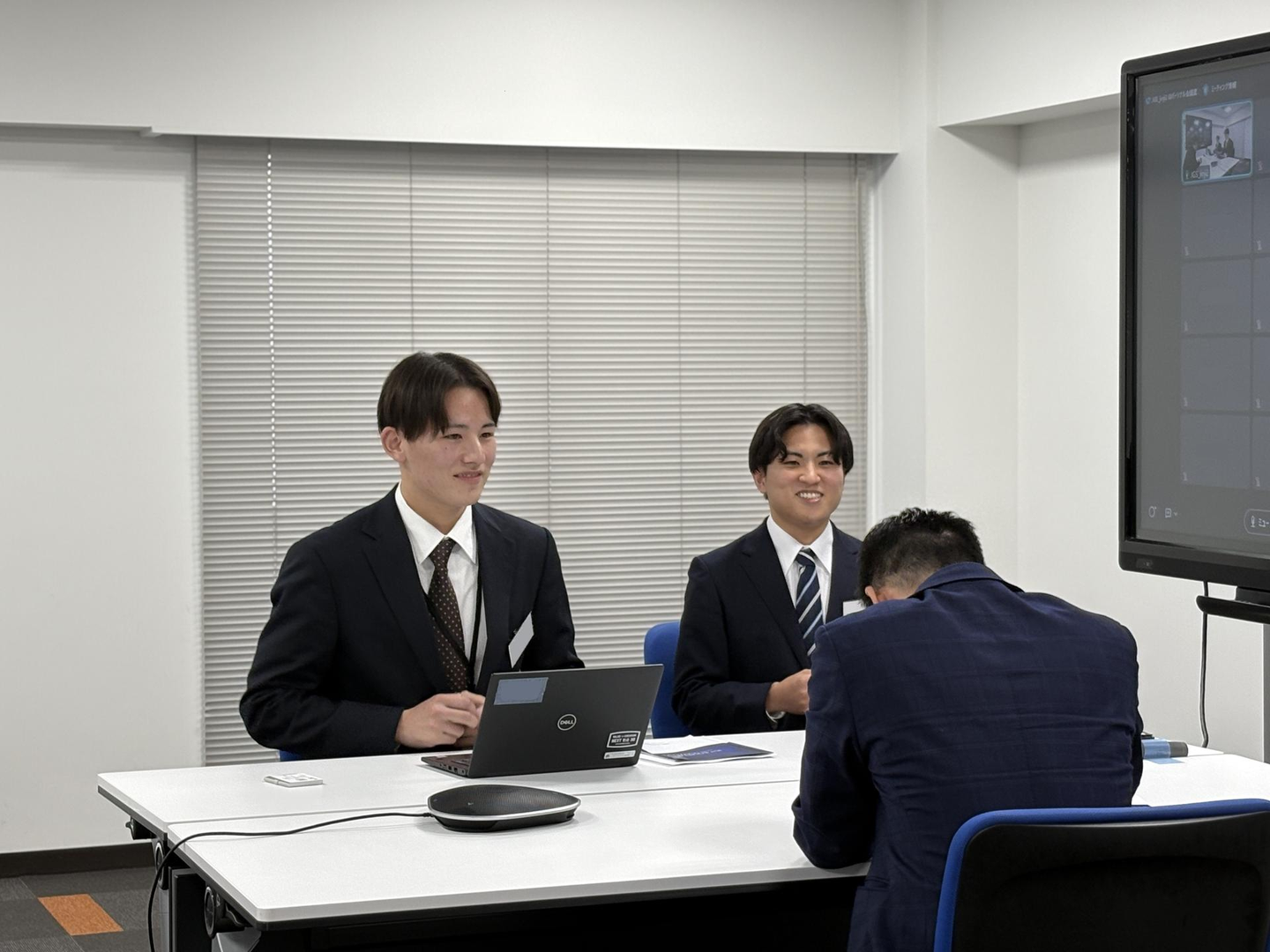 まずは先輩社員のお手本を見てから、それぞれのチームで題材決め!昨年この研修を受ける側だった2年目社員のIさん!堂々とした姿を見て、新入社員の皆さんも刺激を受けたようでした☺