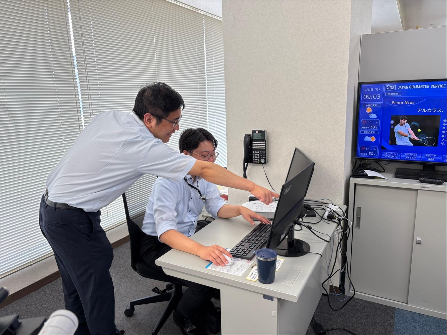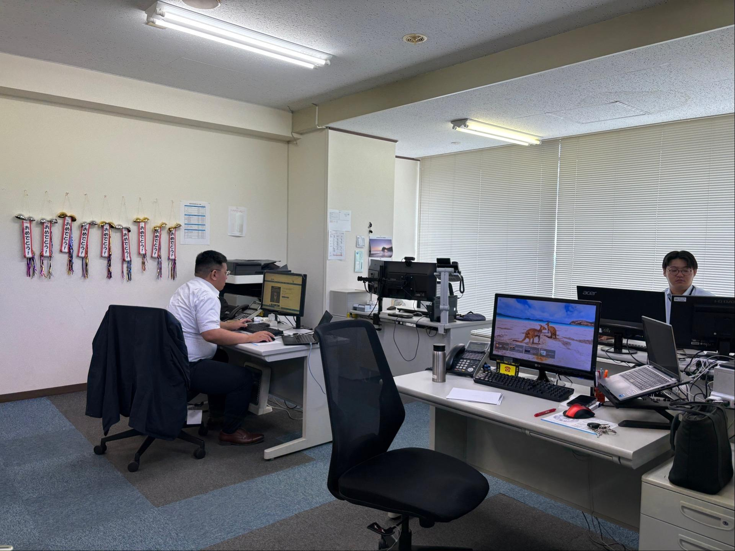2024年中途入社のFさん(写真奥)も、先輩社員と相談しながら業務を進めています🤭