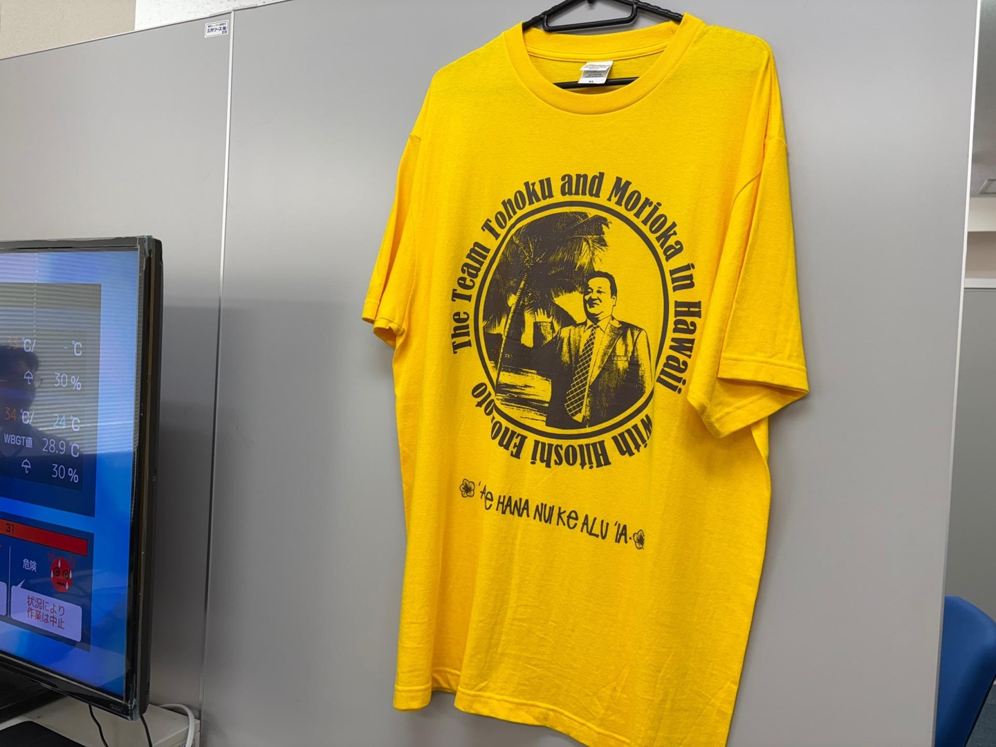 2023年にハワイへ社員旅行に行った際、残念ながら参加できなかった東北支店の支店長(当時)の写真をもとに作ったチーム東北のTシャツも飾ってあります👕🌴🥥