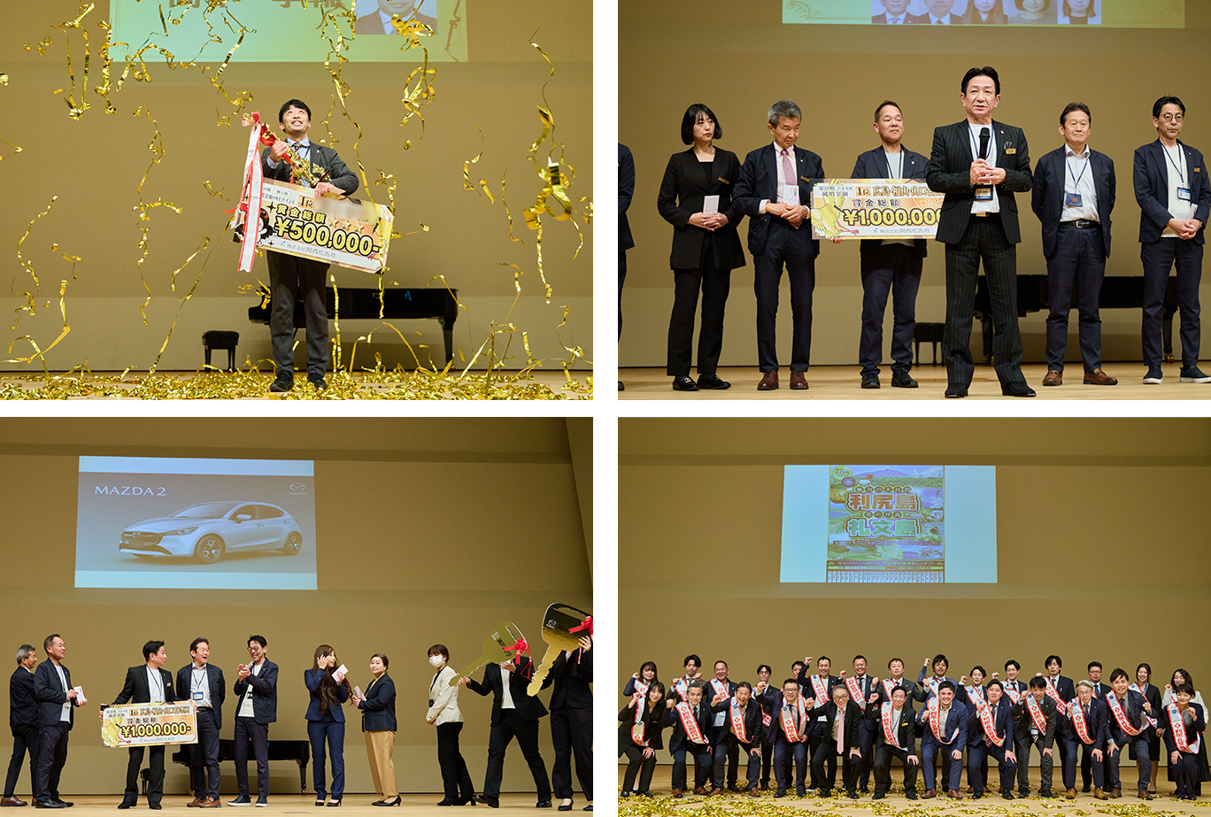 営業所別の対決では広島・山口・福山営業所が見事優勝し、優勝賞金として100万円が営業所に贈呈されました。さらにサプライズで車2台のプレゼントもあり、皆さん驚きを隠せない様子でした。