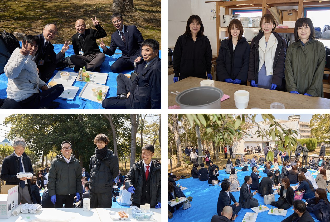 関西広告社名物の芋煮会は、肉・野菜・きのこなど沢山の具材を味噌味のスープで煮込んだ芋煮を手作りし、普段は全国各地に配属されている営業社員等含め、みんなでお喋りしながら楽しく芋煮をいただく会です。少し肌寒さが残る日でもあり、心も体も温まる美味しい芋煮に舌鼓を打ちました。