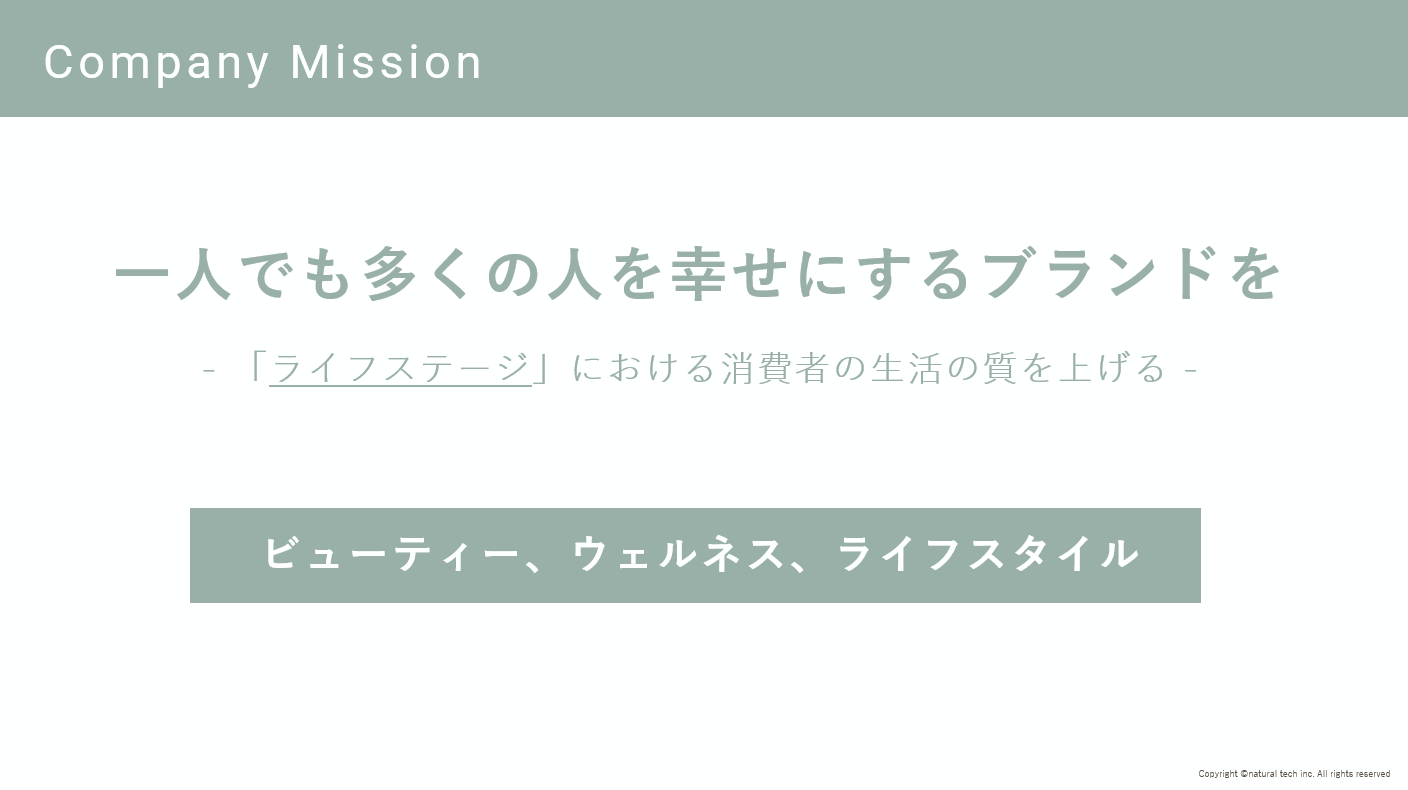 私(竹内)と片岡は元々P&G出身ということもあり、P&Gが「世界中の消費者の生活の質を向上する」という強烈なミッションに触れた経験があり、その影響も相当受けています。