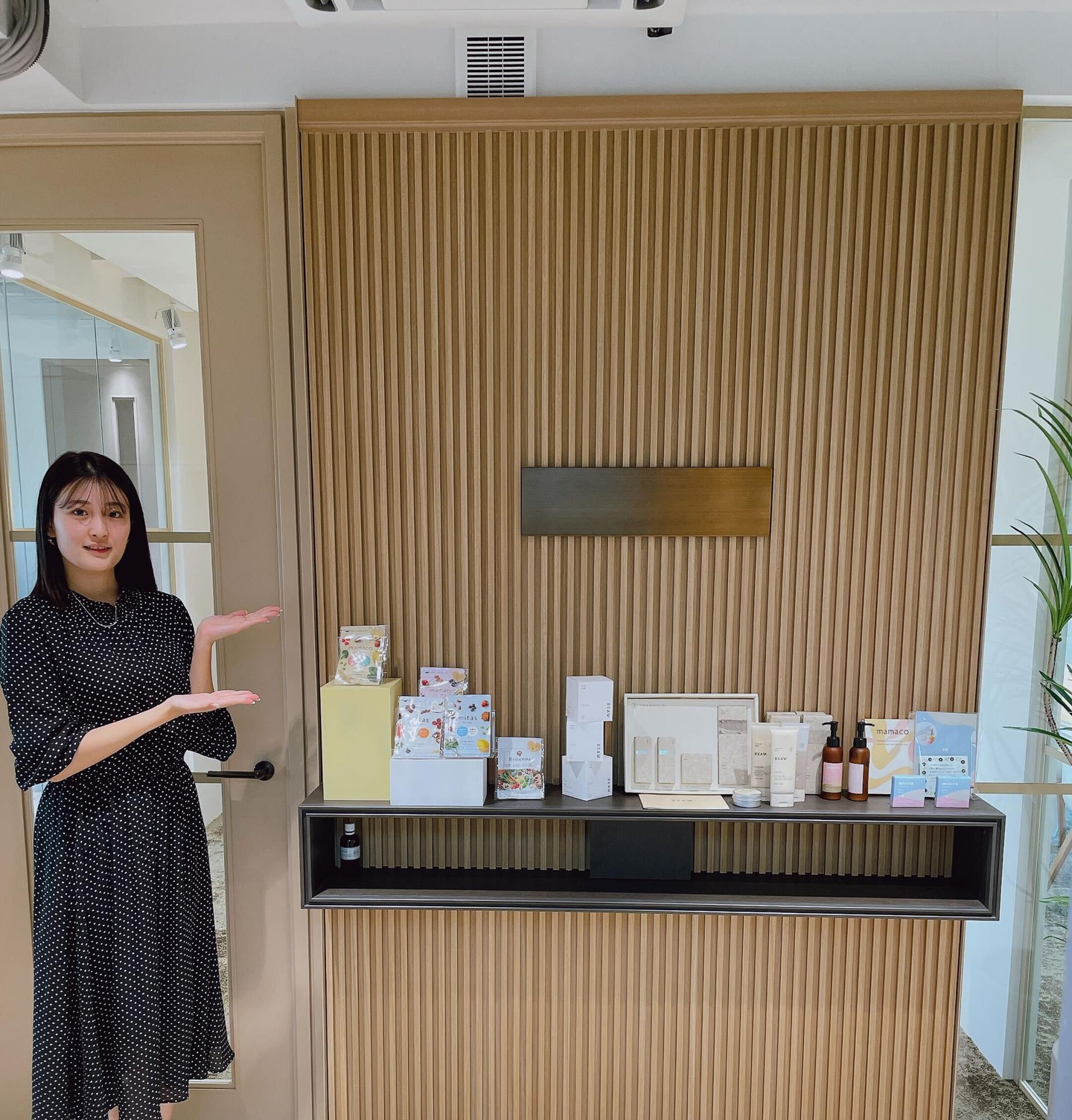 こちらはエレベーター降りてすぐのエントランスです。ナチュラルテック製品が綺麗に並んでいて世界観が感じられます。