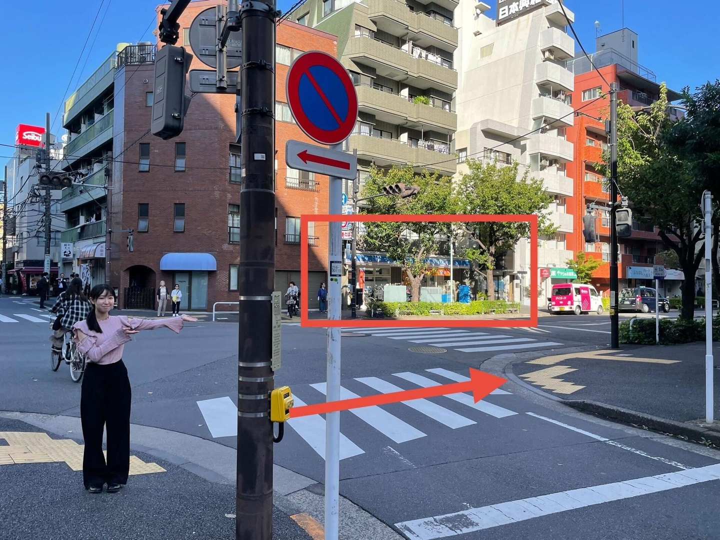 ⑥そのまま真っすぐ進み、向かい側にローソンが見えたら、右手に曲がります。