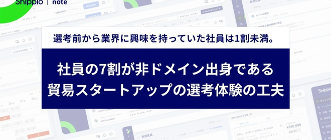 "貿易を超える" Shippioは、貿易業務の効率化とシームレスなサプライチェーンの構築により、誰もが手軽に貿易ができる世界の実現を目指しています。 ECの発達や新興国経済の発展に伴い世界中で物量が増える中、輸出入の現場は深刻な人手不足と業務の負担増加・ブラックボックス化が進んでいます。 貿易業界の革新を目指すデジタルフォワーダーとして、製造業・商社を中心に海外ビジネス強化支援につながる貿易業務クラウドサービスと、世界中で船や飛行機を動かす貨物輸送の実オペレーションをワンストップで提供しています。