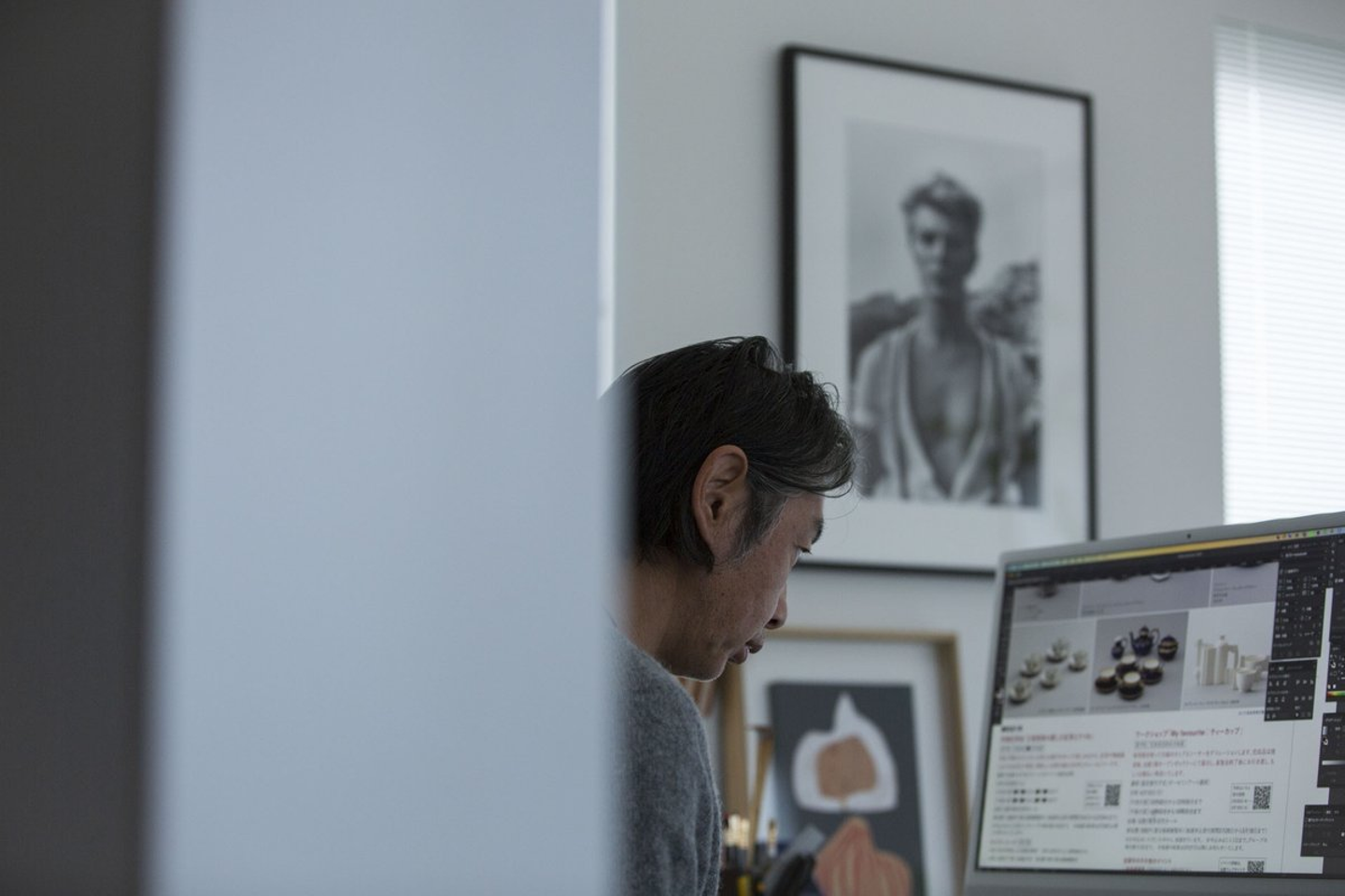 事務所で作業中