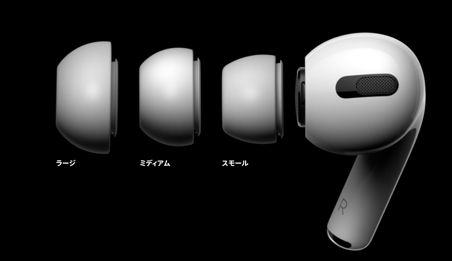 AirPodsはイヤーチップが付属されていないので耳の形に合わせた調整ができず自分の耳に合わない人も多いという話を聞いたことがありますが、AirPods ProにはS・M・L3サイズのシリコーン製イヤーチップが同梱されています。