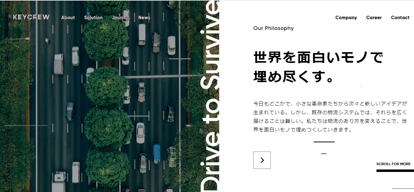 ・コンテンツの形も統一させると全体がまとまる次は横スクロールがインパクト大!な株式会社KEYCREWさん。