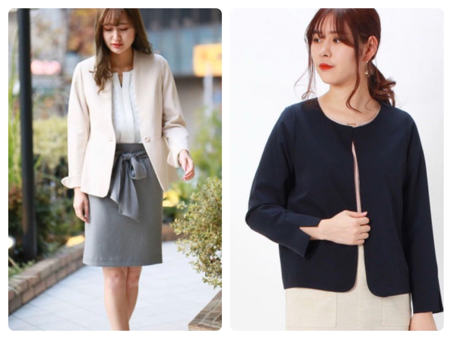 toccoと比較すると来客時に活躍するジャケットなど少しカッチリしたスタイルが多いです。形もノーカラーやVネックと種類も豊富なので、好みの形を選べるのも嬉しいポイント。ジャケットでも価格は4000円程度とプチプチなので、1枚持っておくだけで急な打ち合わせも安心です。