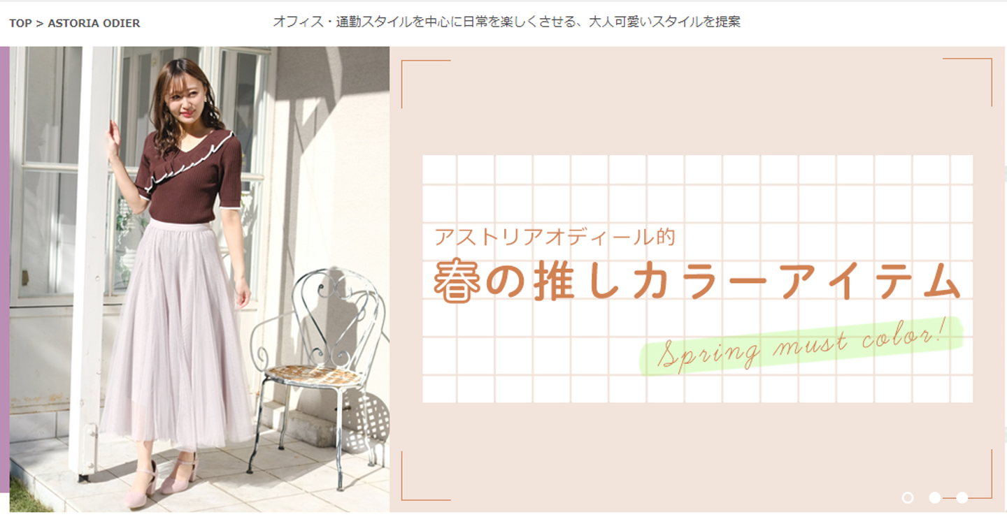 ブランドコンセプトは「オフィス・通勤スタイルを中心に日常を楽しくさせる、大人可愛いスタイルを提案」まさに今回の記事テーマにピッタリなブランドです。店舗はまだ新宿、池袋、横浜の3店舗しかありませんが、系列のAstoriaはパーディーや結婚式向けのドレスを扱うブランドとして有名です。