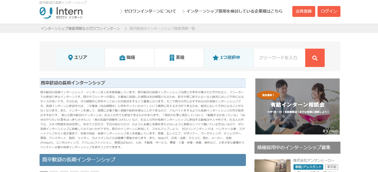 都内以外の日本全国各地のインターンが豊富なインターン募集サイトです。