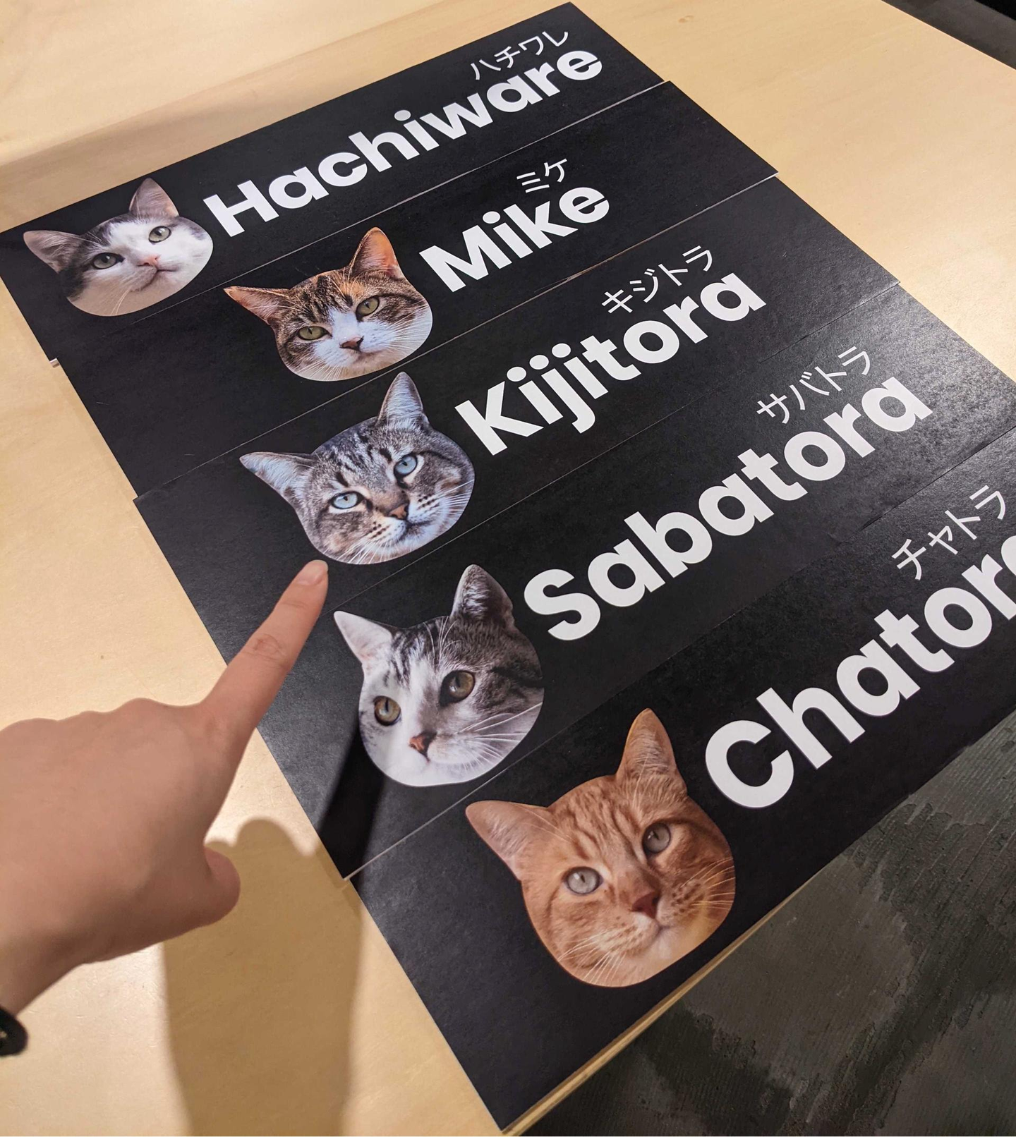 また、猫への変貌に合わせて、社内のミーティングブースの名称も猫の名前に刷新!