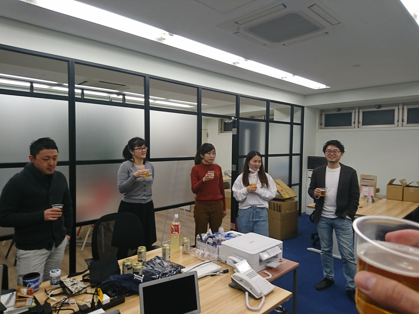 移転後初出勤の夜は、移転祝いに新オフィスにて飲み会を行いました 。