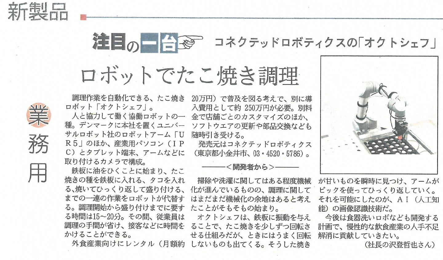 タイトル:新製品 注目の一台 コネクテッドロボティクスの「オクトシェフ」