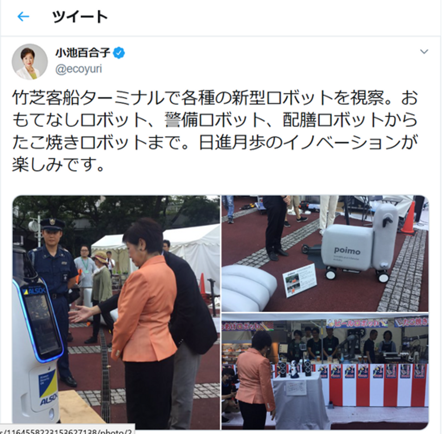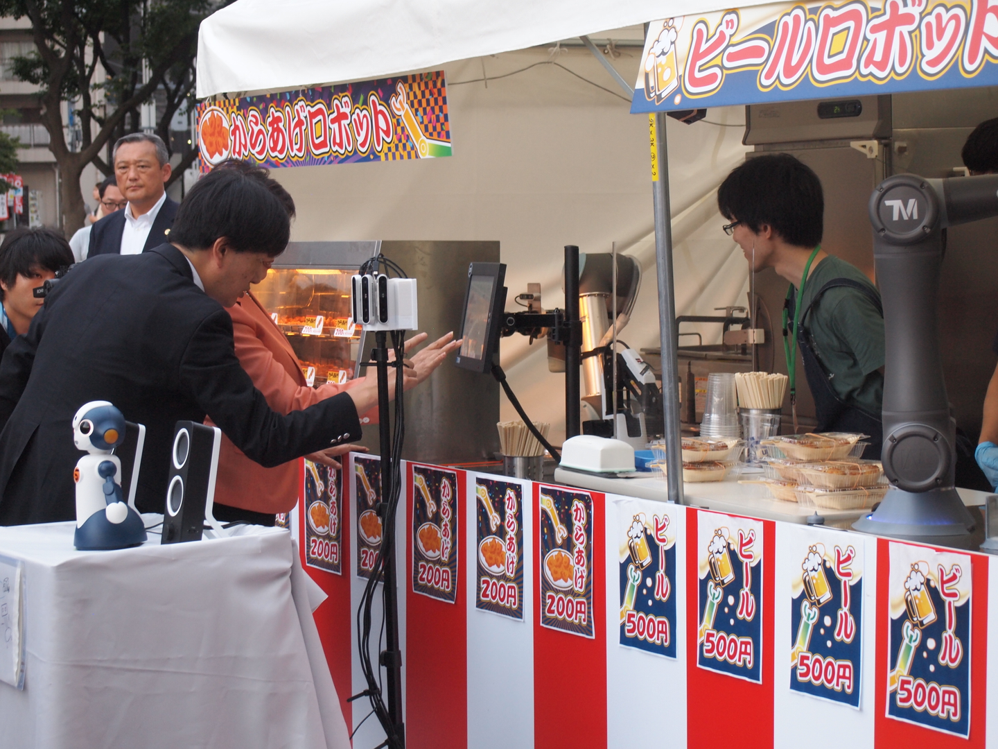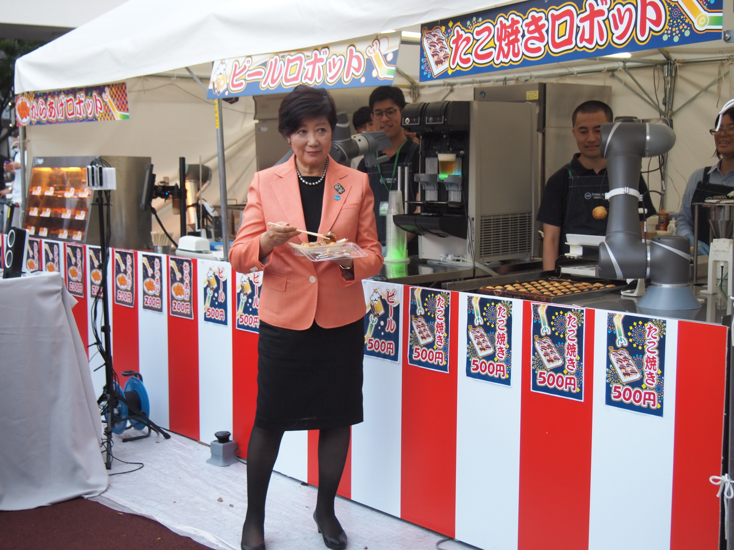 そして本イベントは東京都の主催ということもあり、初日に、なんと小池百合子東京都知事も視察に来てくださり、弊社のロボットも見学し、たこ焼きもしっかり食べていただきました!!