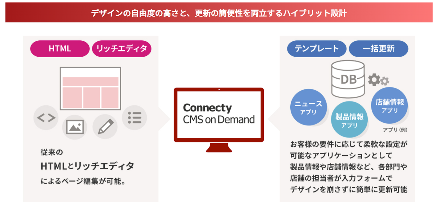 また、Connecty CMS on DemandはCMS単体ではなく、インフラを含めた総合的なWeb基盤としてソリューションを提供している点もユニークです。