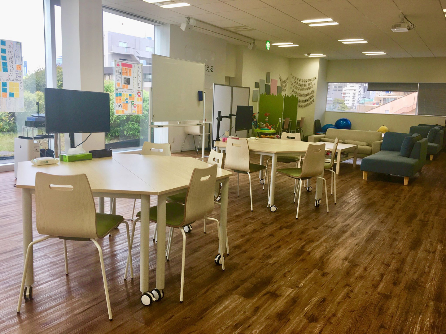 その際に、ユーザーさんがリラックスしてお話いただけるように、こちらのプレイルームで実施することもあります。(お子さんを連れてご来社いただけるように、ぬいぐるみやおもちゃも置いています。)