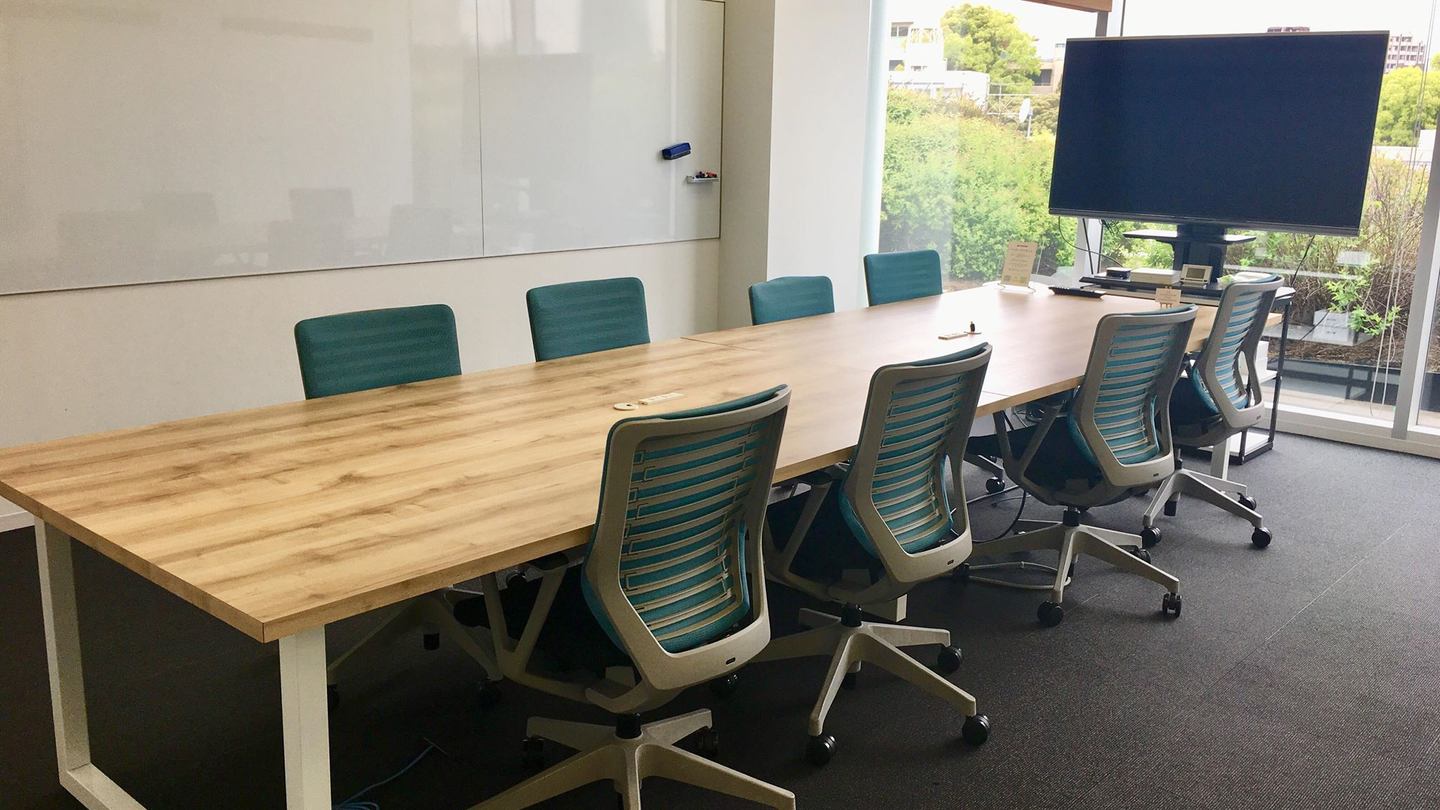 こちらの会議室では来客や採用面接、そして目標の振り返りなどをこちらの会議室を使用していることが多いです。