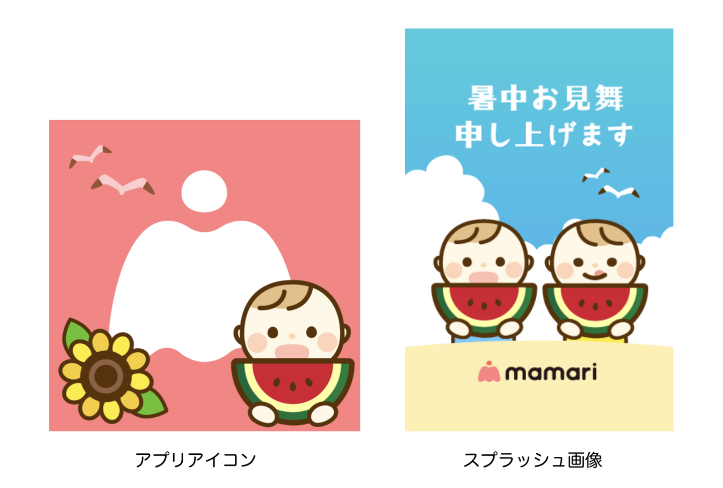 デザインチームでは、定期的にアプリ内で季節感を出すようにアプリアイコンやスプラッシュ画像を変更しています。夏に向け制作したデザインはこちらです。