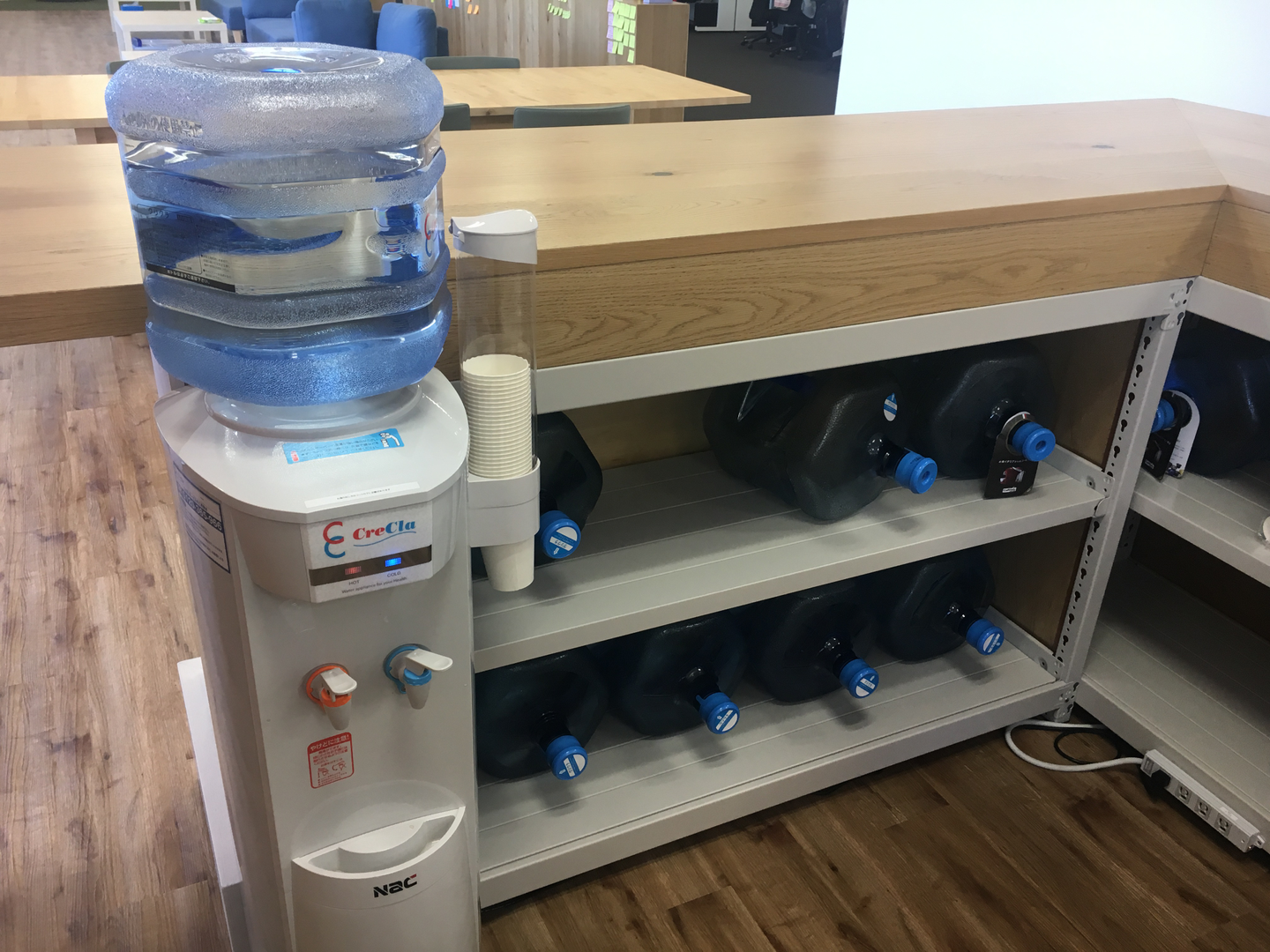 バーカウンター内に常設されているウォーターサーバーはフリー。
