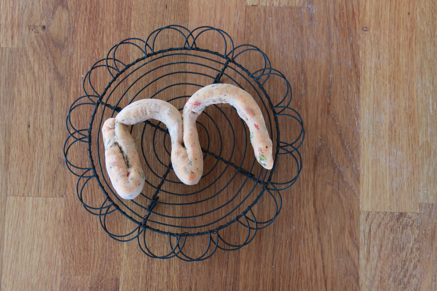 トマトとほうれん草をたっぷり使った生地は、もちもちで栄養たっぷりです。