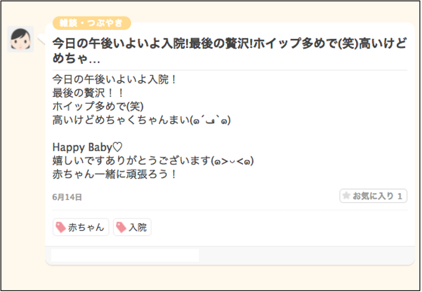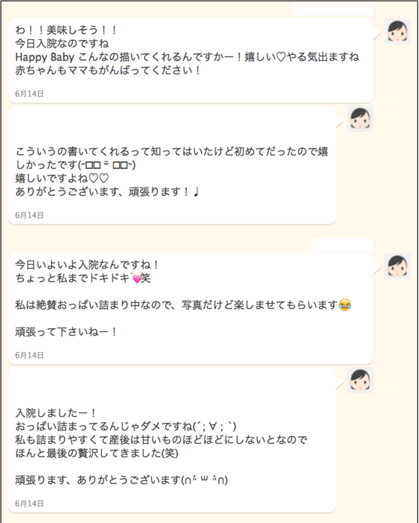 出産前の投稿者をユーザー同士で応援。すごく素敵ですよね。