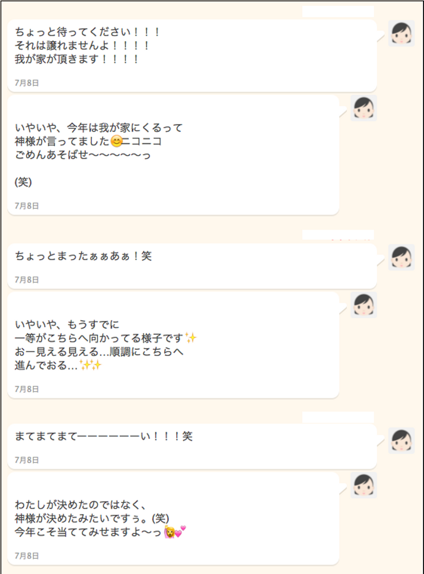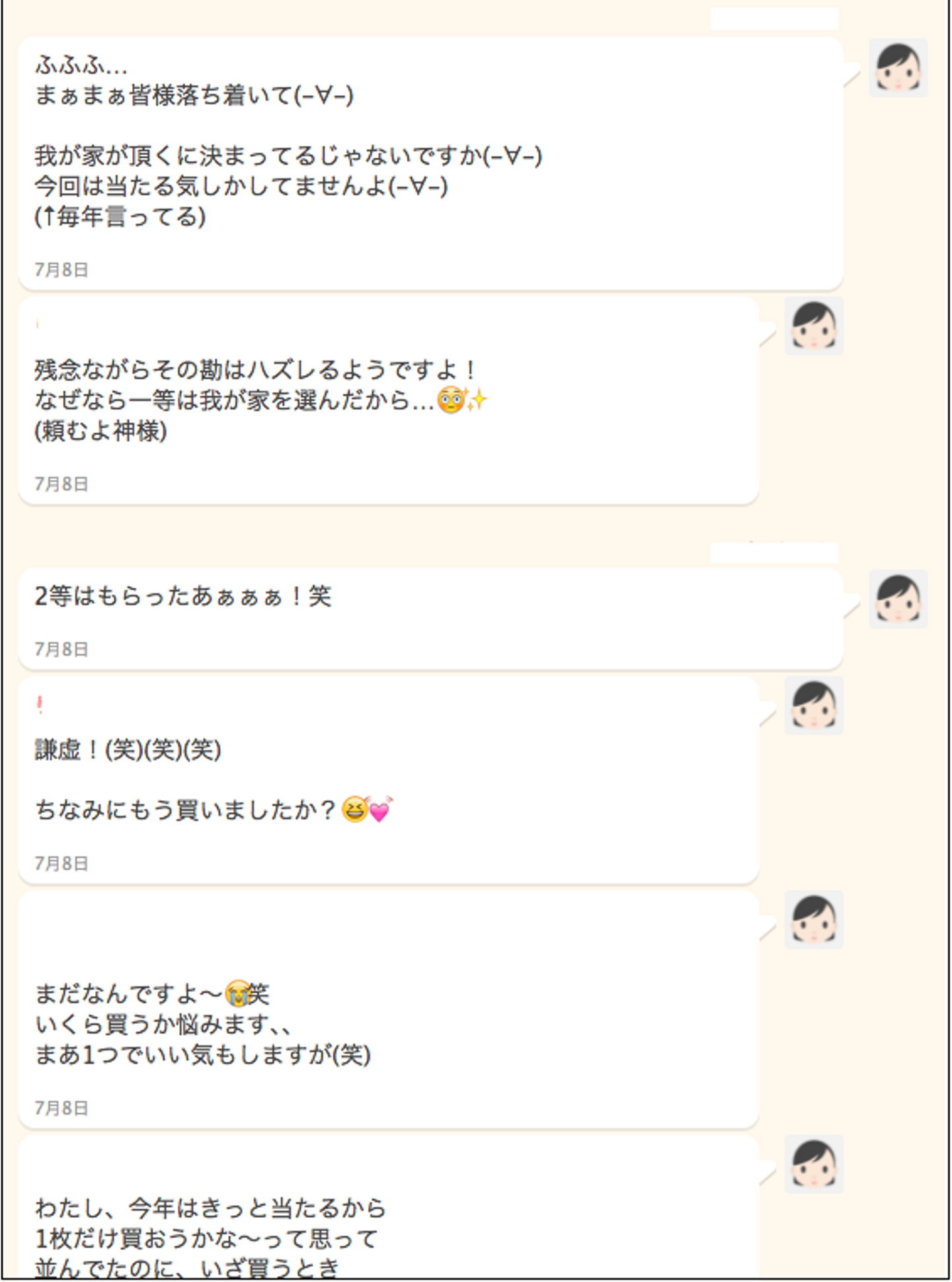 このやりとりのユーザー同士は、元々の知り合いとかではないんですが、すごく慣れ親しんだお友達のようにやりとりされています。