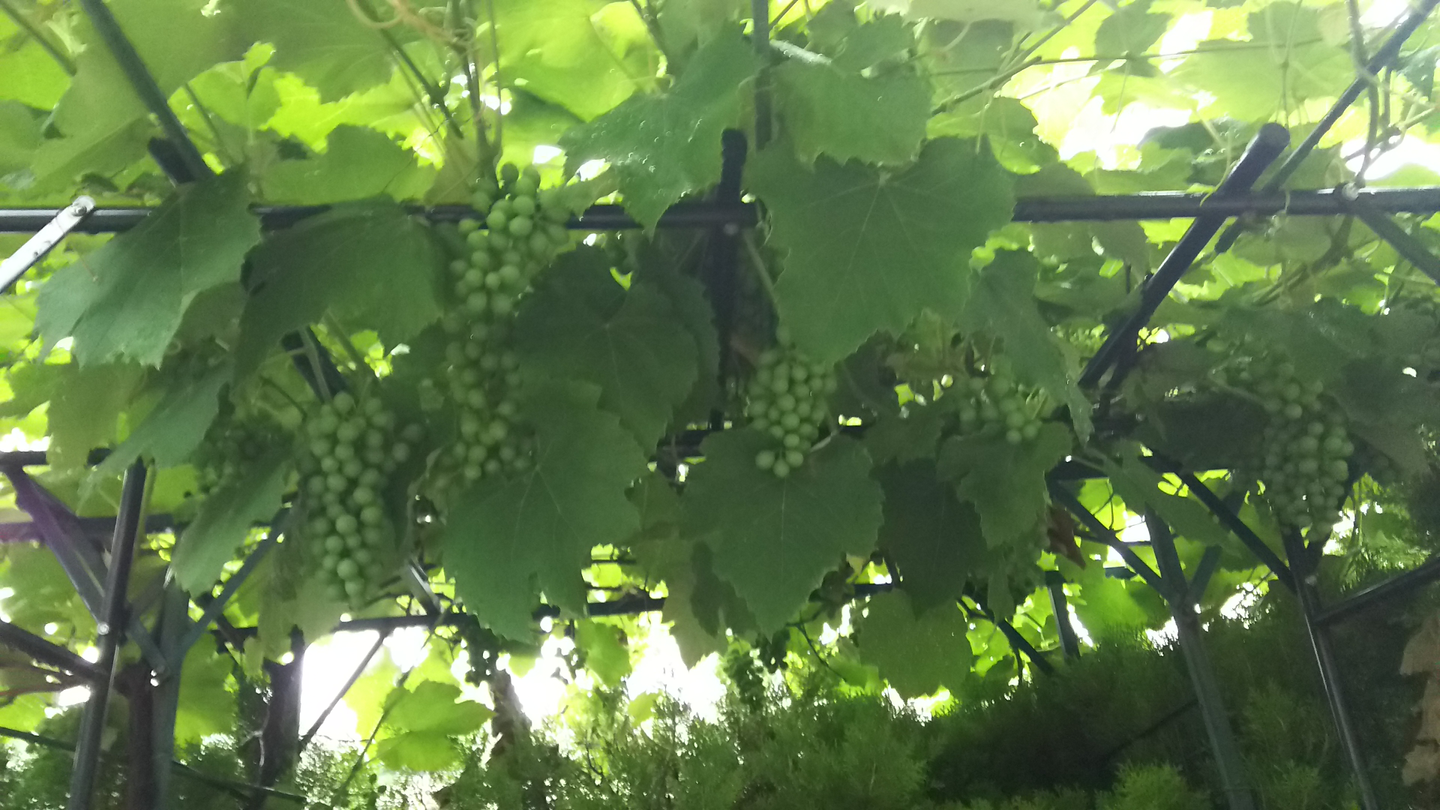 これから葡萄に袋をかけて鳥に食べられないように守るので、実っているのを見られるのはこの時期だけです。