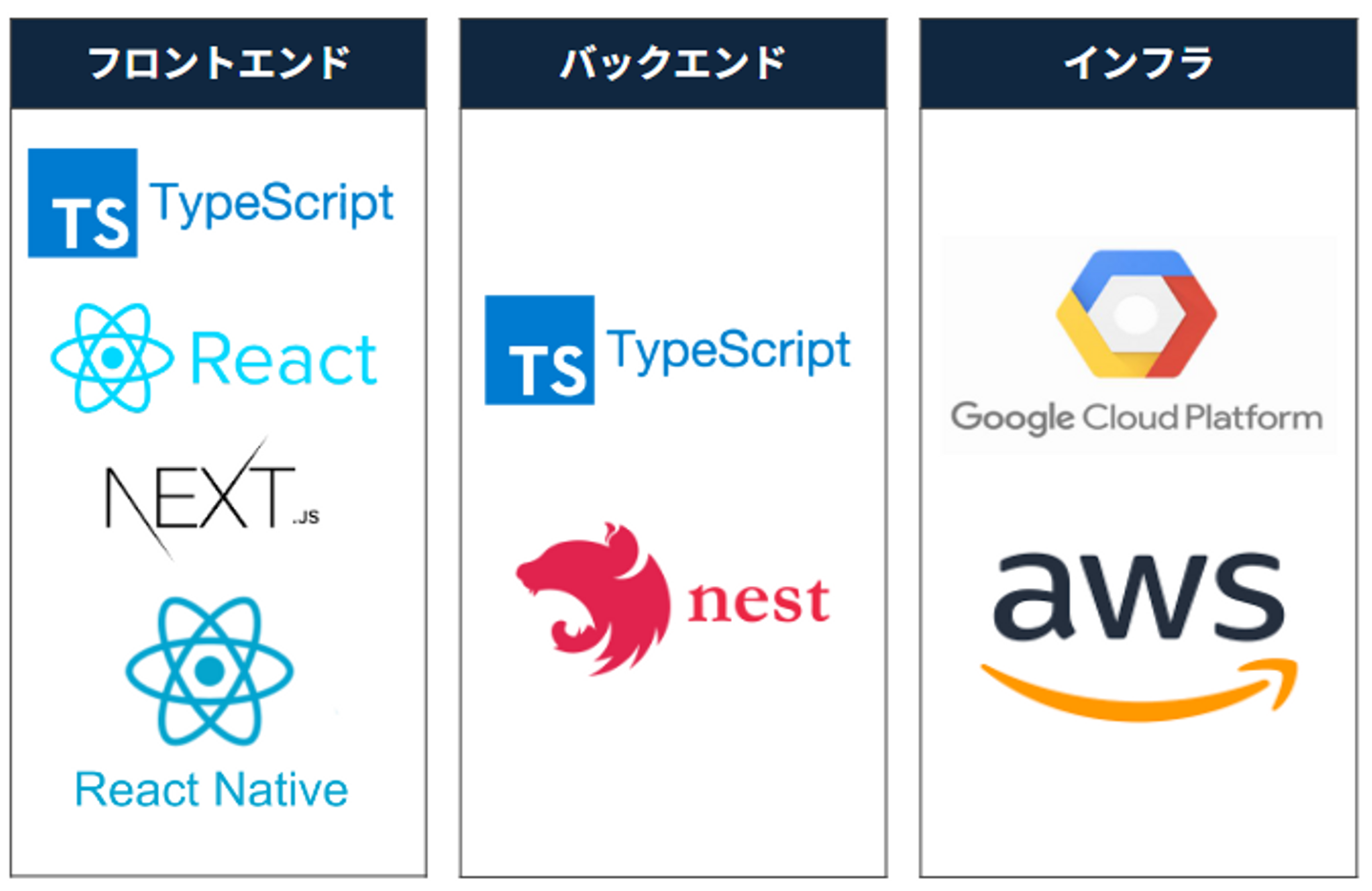 小西:それぞれのグループが連動することによって顧客体験をつくることができるんですね。ところで、プログラミング言語は数百種類以上存在すると思うのですが、クックビズの技術環境を教えていただきたいです!