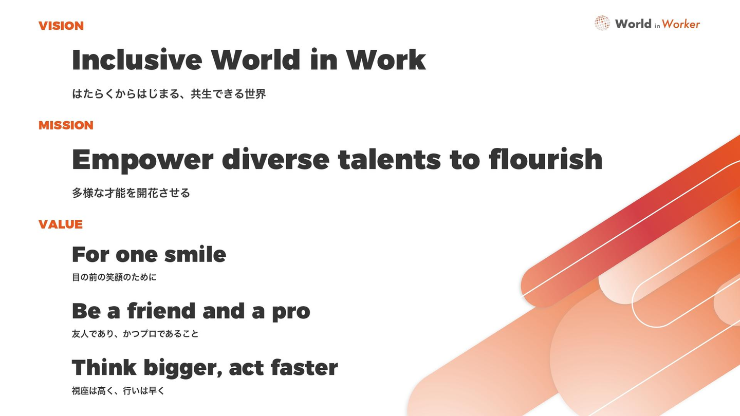 今回はクックビズグループの仲間であり、特定技能外国人の人材紹介業・登録支援を行うワールドインワーカー株式会社(以下、WiW)が、新たに制定したビジョン・ミッション・バリューについて、制定の背景や込められた想いをお伝えしたいと思います!