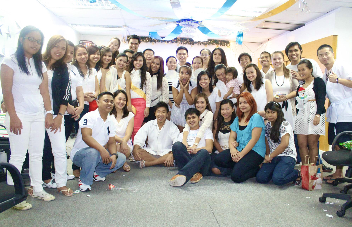 [写真:拠点開始3年目の社内イベント。テーマカラーが白だったので全員服が白]