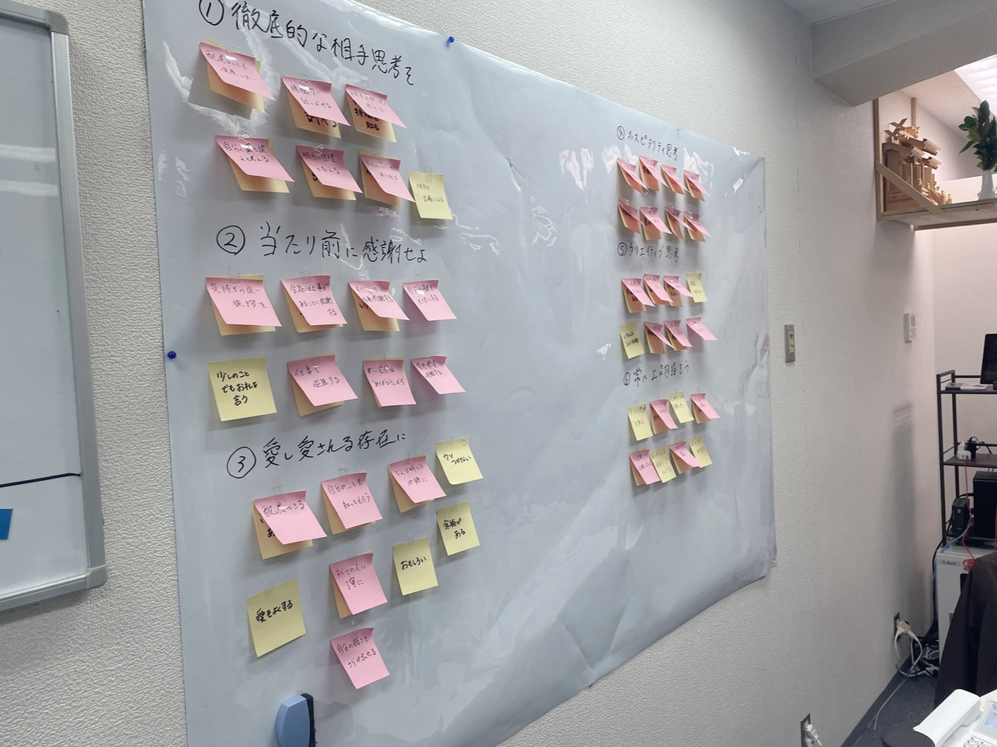 今月は従業員が「自ら考えるMVV戦略」という内容で話し合いました。